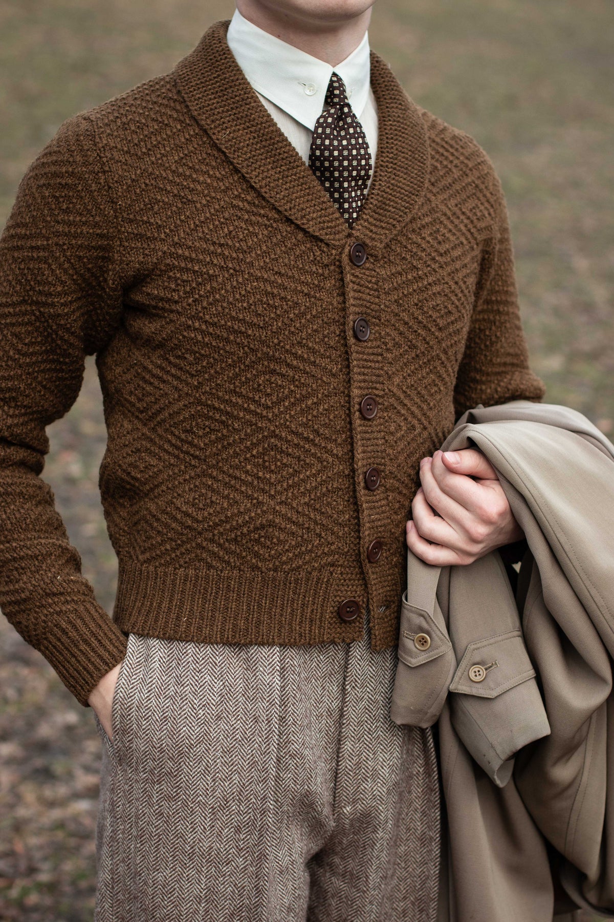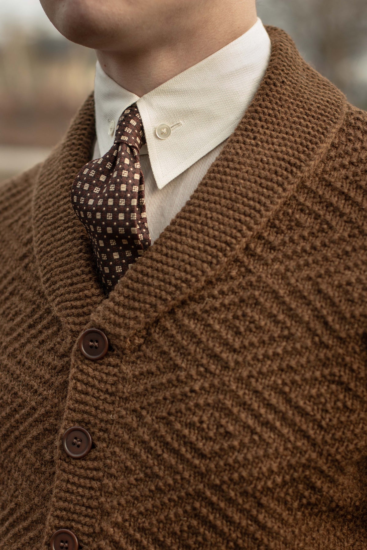 Our Laggarsvik shawl collar cardigan is made of 100% wool and produced by skilled craftsmen in Estonia, a country with a long tradition of knitting. It has been designed with a vintage Swedish home knitted cardigan serving as inspiration. It is tightly knitted making it heavier and more sturdy than most knitwear of today.