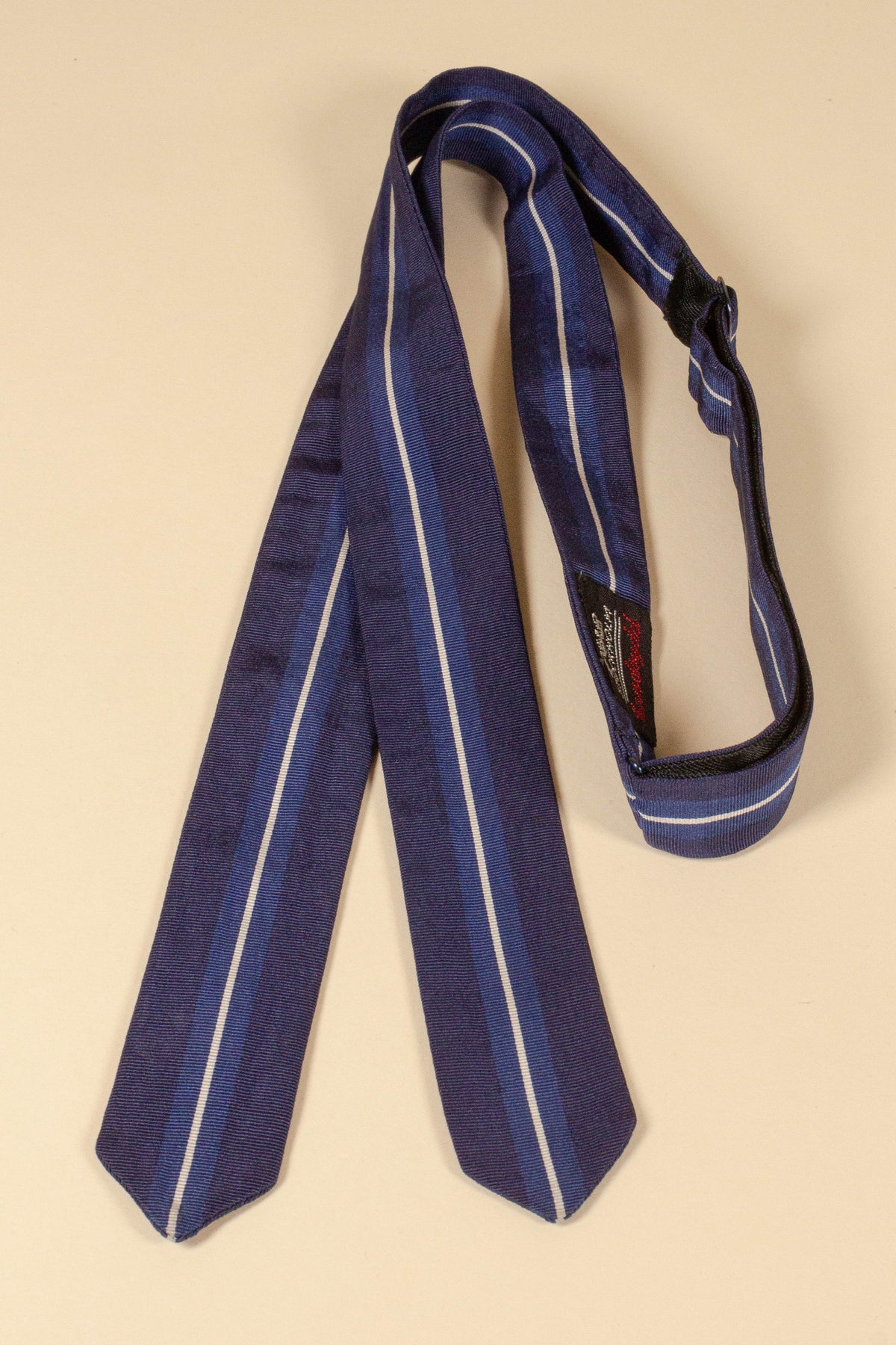 SWEDISH 1950S/1960S DARK BLUE/LIGHT BLUE-STRIPED ADJUSTABLE BOW TIE BY PUB