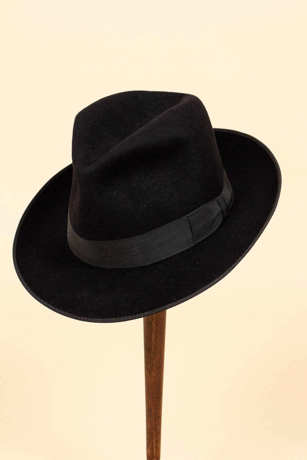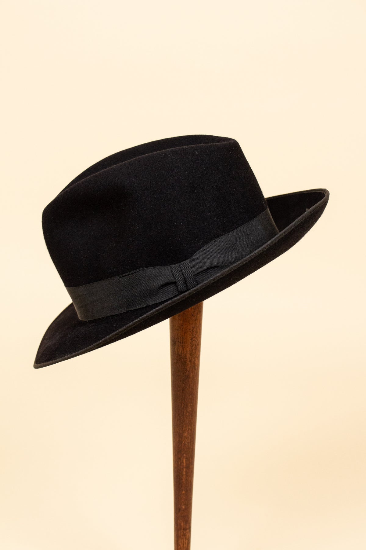 1930S/1940S BLACK FEDORA FELT HAT. SIZE EU 57,5