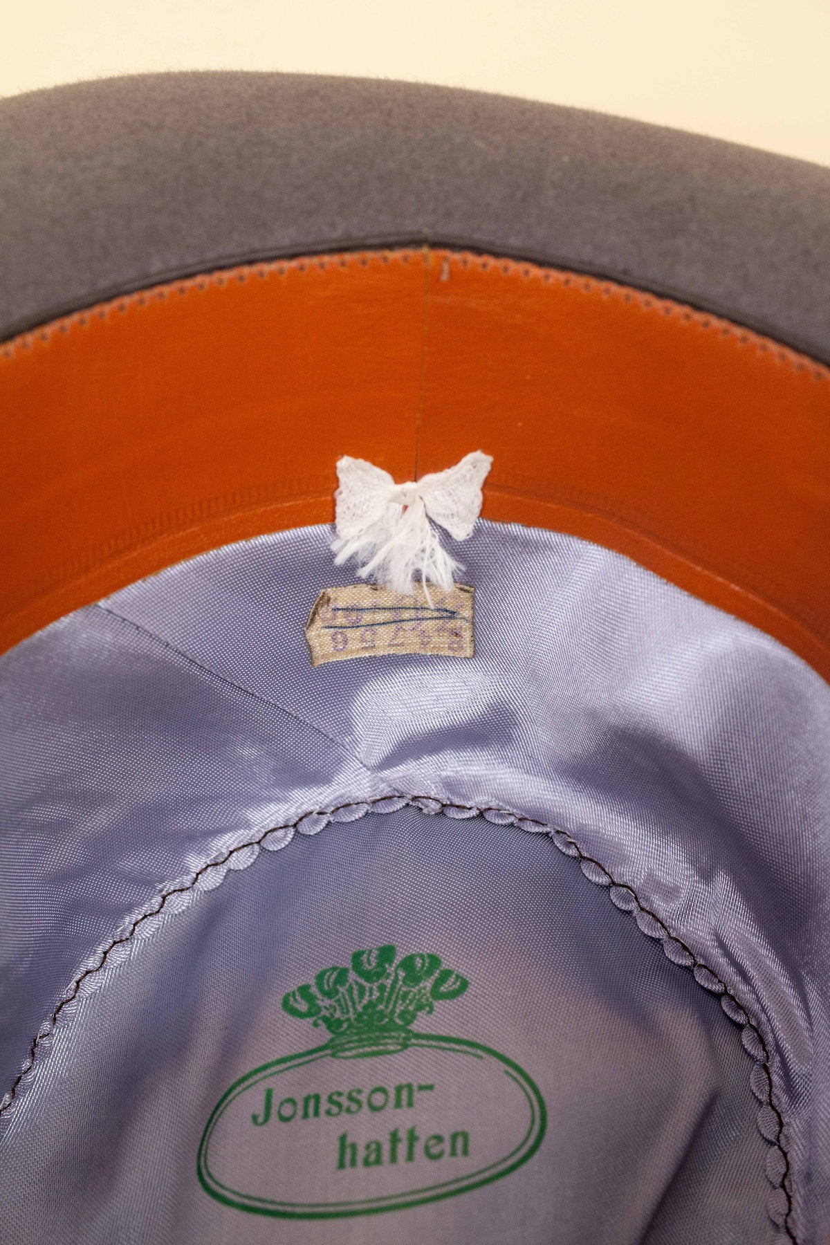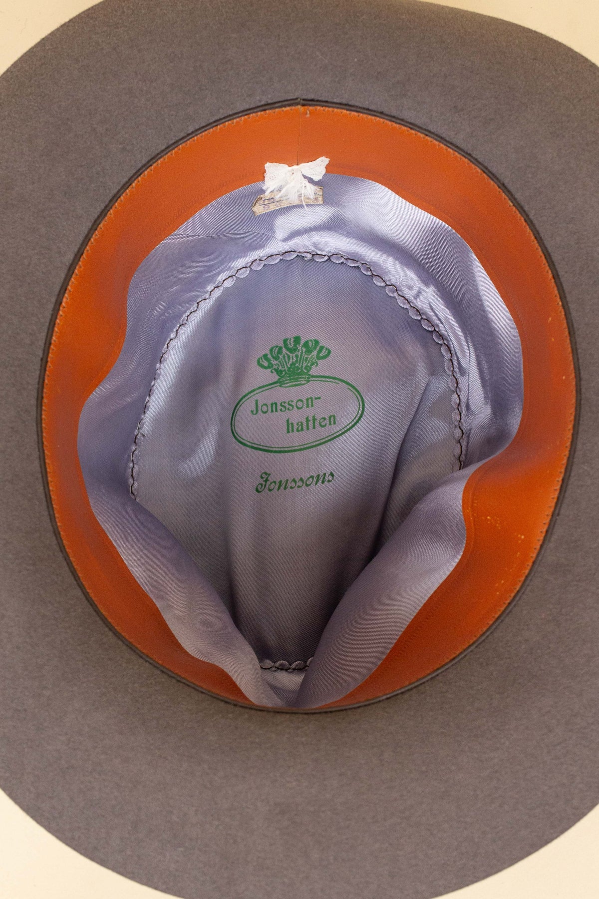 Den här hatten är av svenskt ursprung. Den är av märket "Jonsson-hatten", producerad av Jonssons. Den är troligen från 1920- eller 1930-talet.