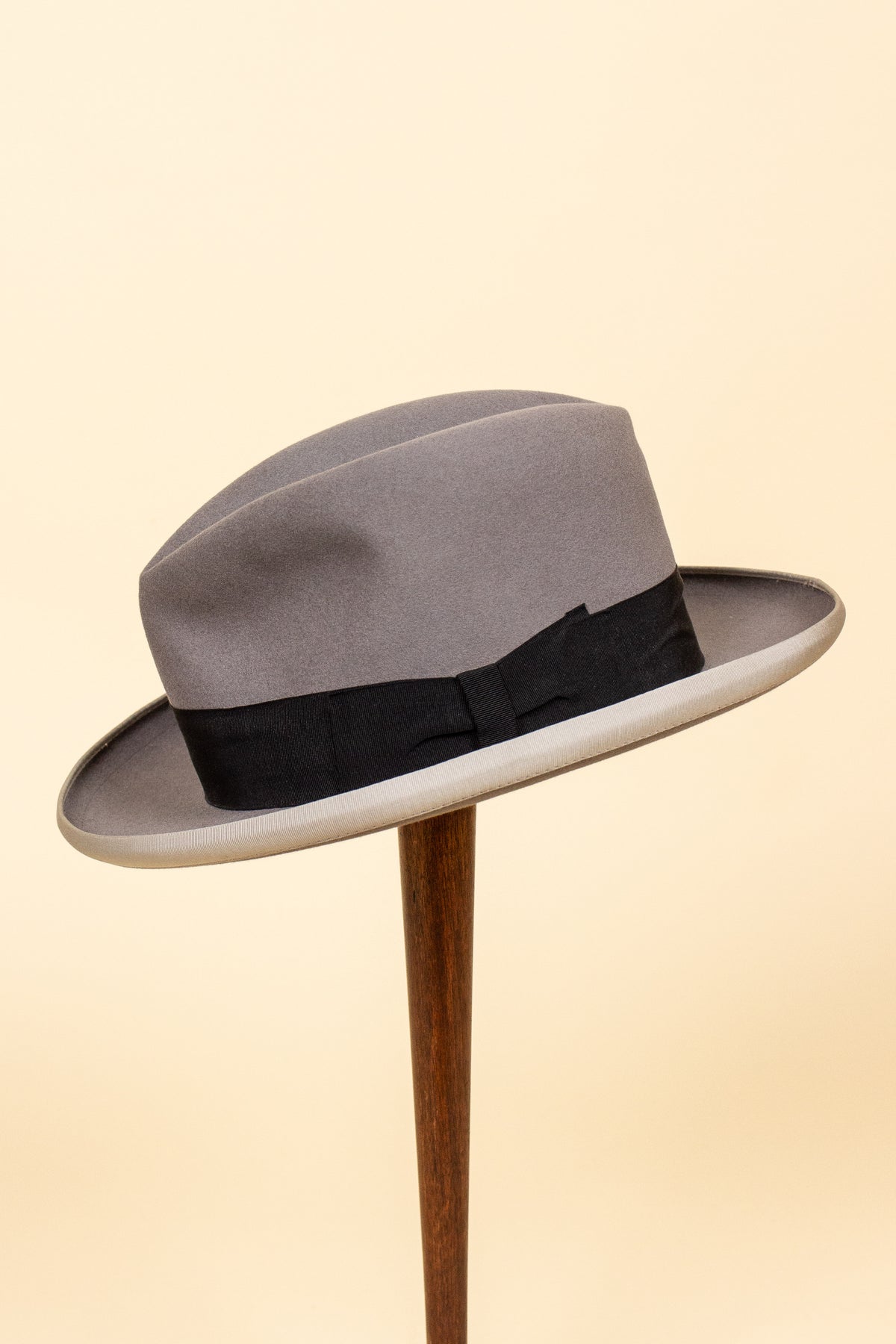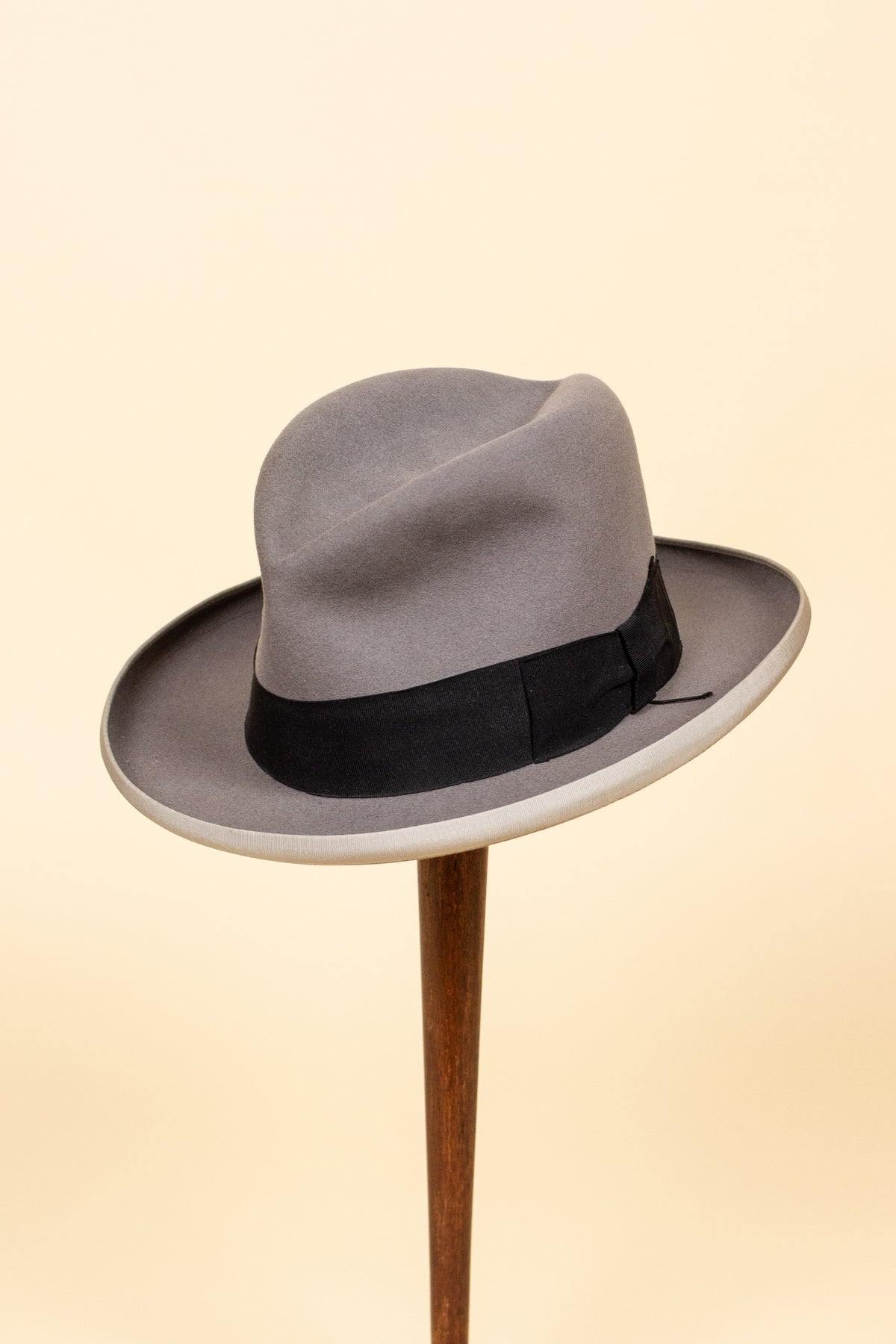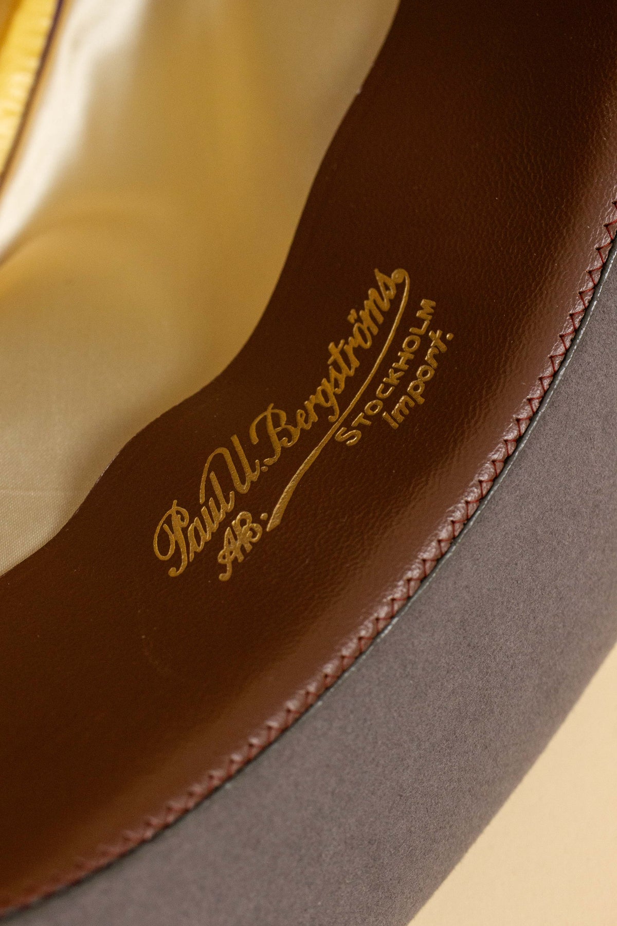 This hat is of Italian origin, made by the legendary hatmaker Borsalino. While it’s difficult to date precisely, it likely originates from the 1940s or 1950s. It was imported to Sweden and sold by Paul U. Bergström, one of Stockholm’s most iconic department stores, now closed for many years.