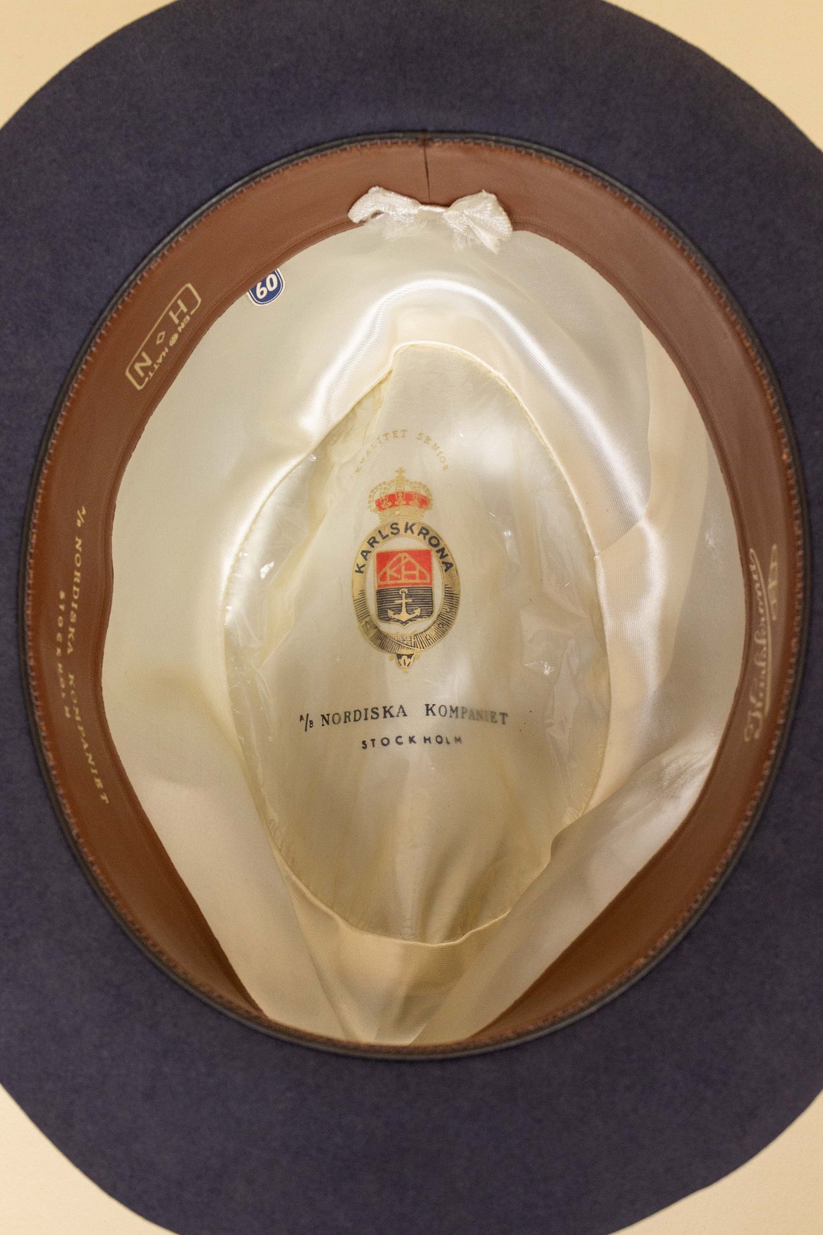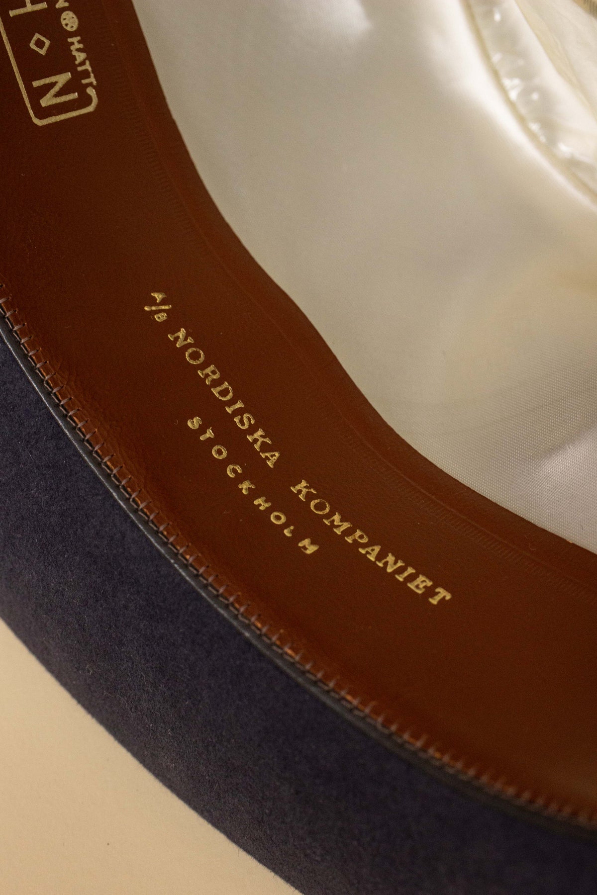 This hat is of Swedish origin and was produced sometime during the 1940s or 1950s at the Karlskrona Hat Factory – Sweden’s most renowned hat manufacturer, located in the southern town of Karlskrona. It was originally sold at NK (Nordiska Kompaniet), one of Stockholm’s most iconic department stores.
