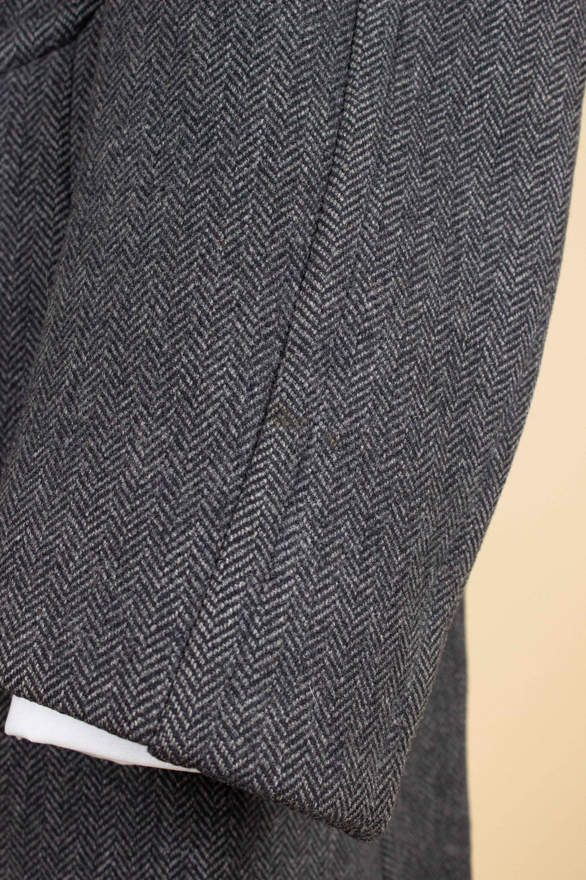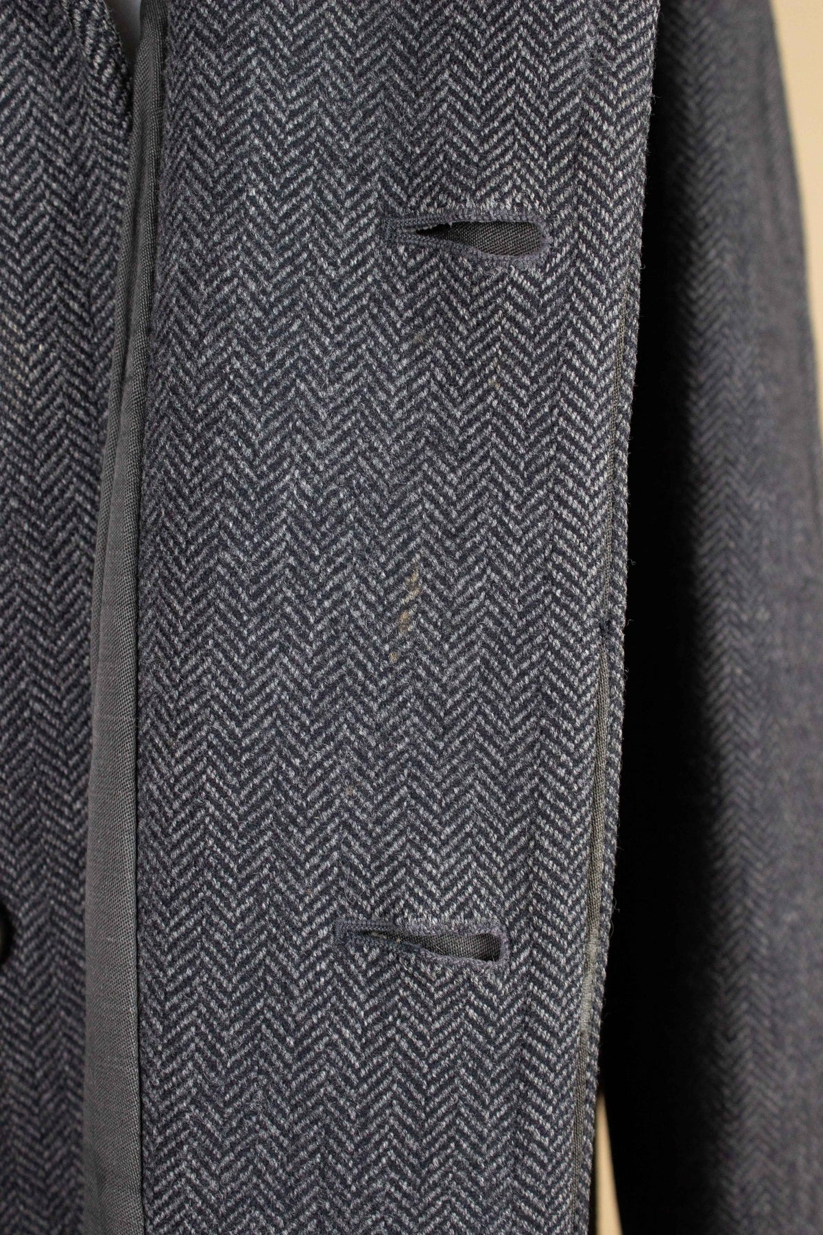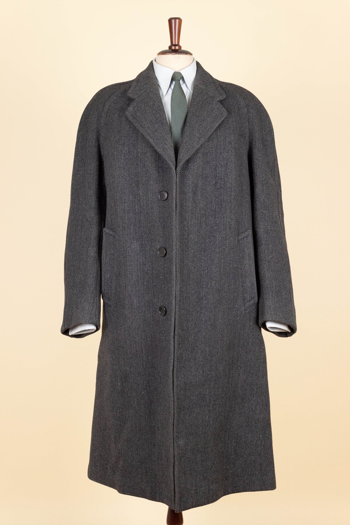 This raglan coat is of Swedish origin. It was made sometime during the 1940s, or possibly the early 1950s. The brand is Junex, and it was originally sold at Ohlsons in Leksand, Dalarna - a shop that, in fact, still exists today. It is made from a heavy grey wool fabric with a distinctly pronounced herringbone structure.