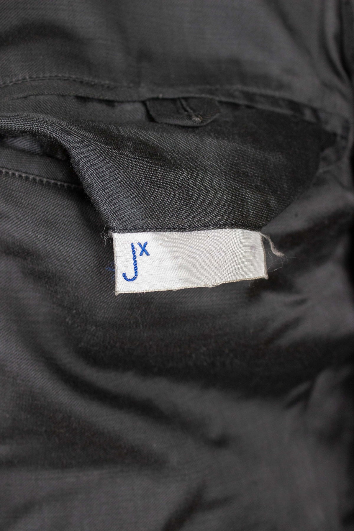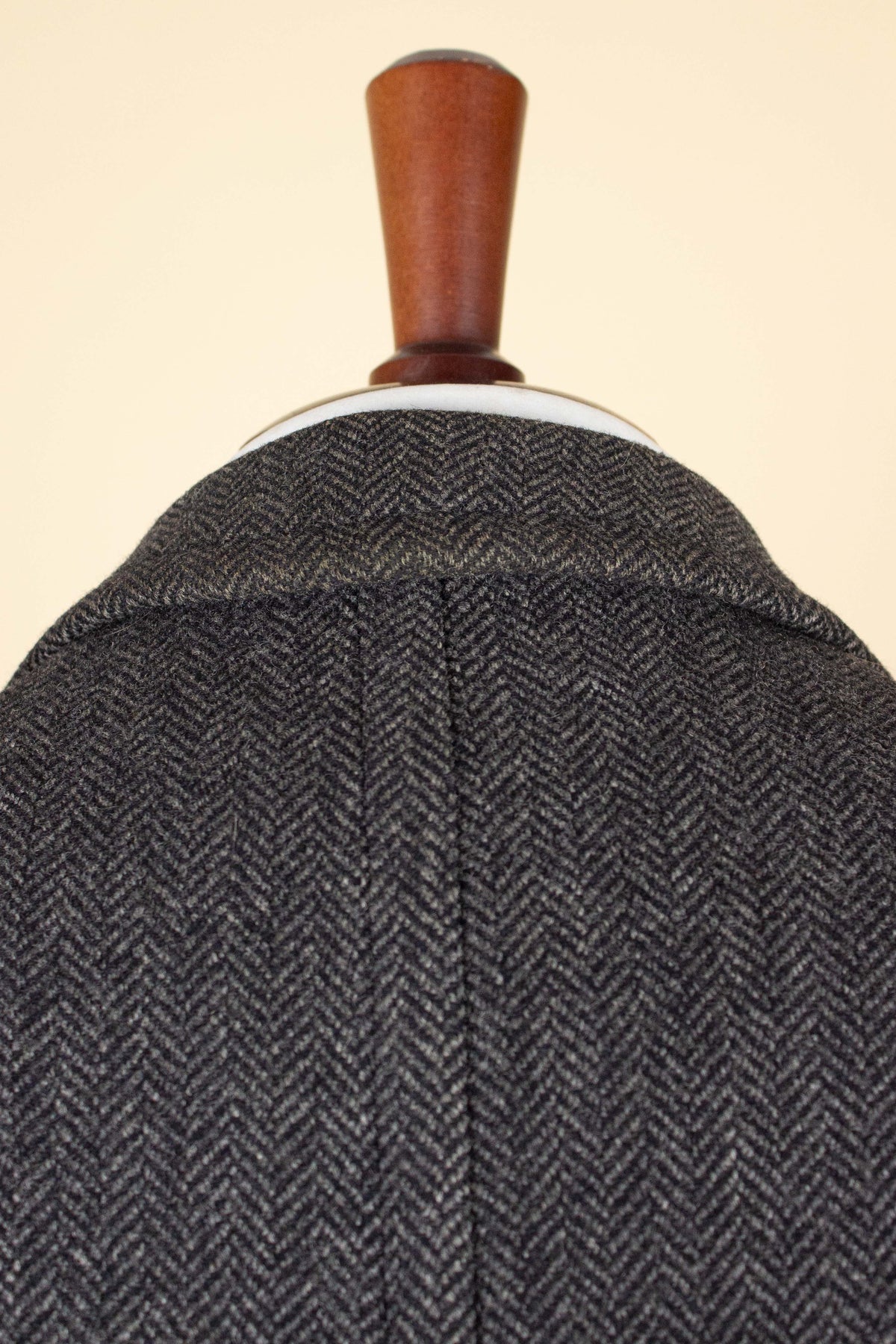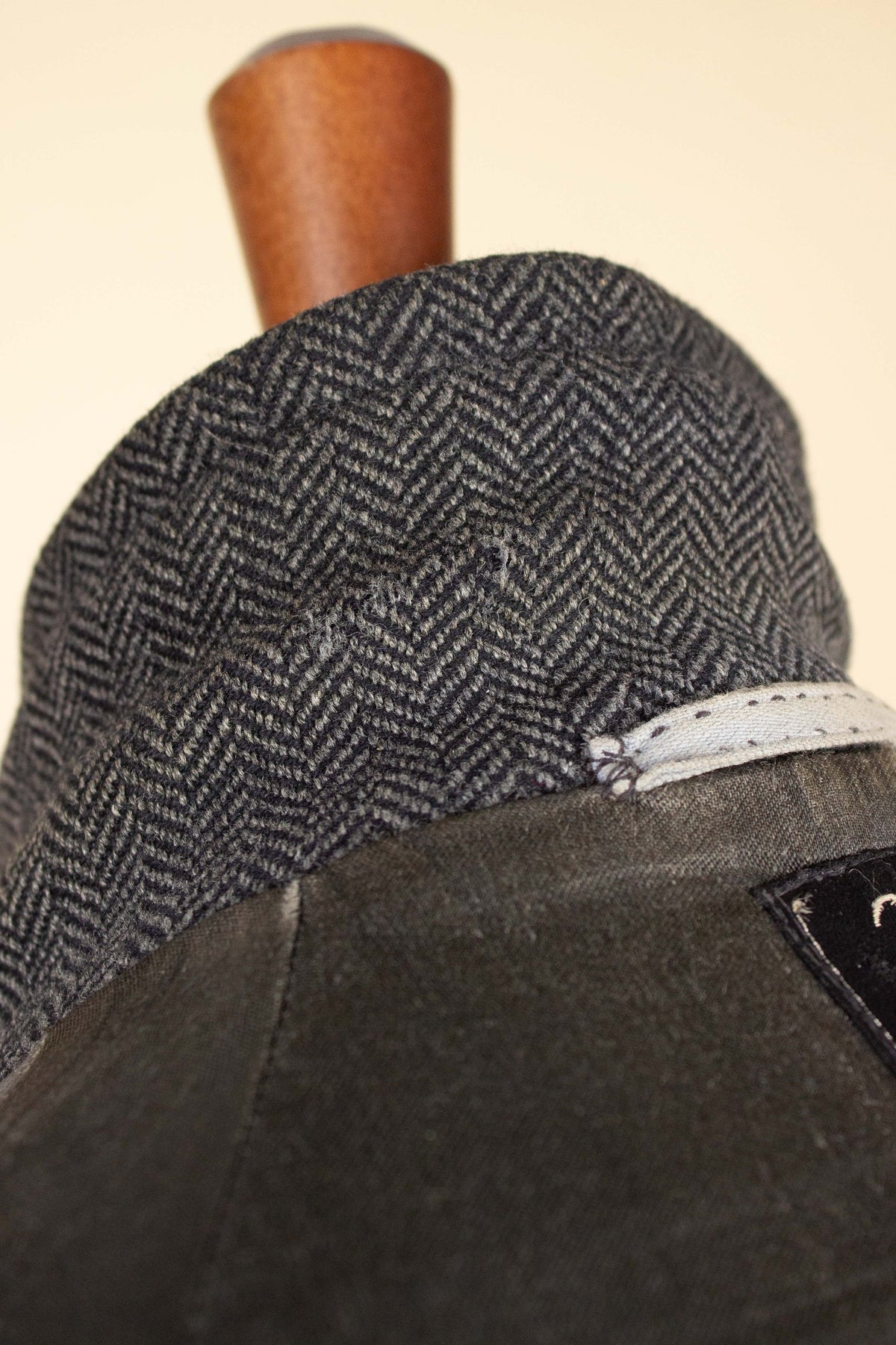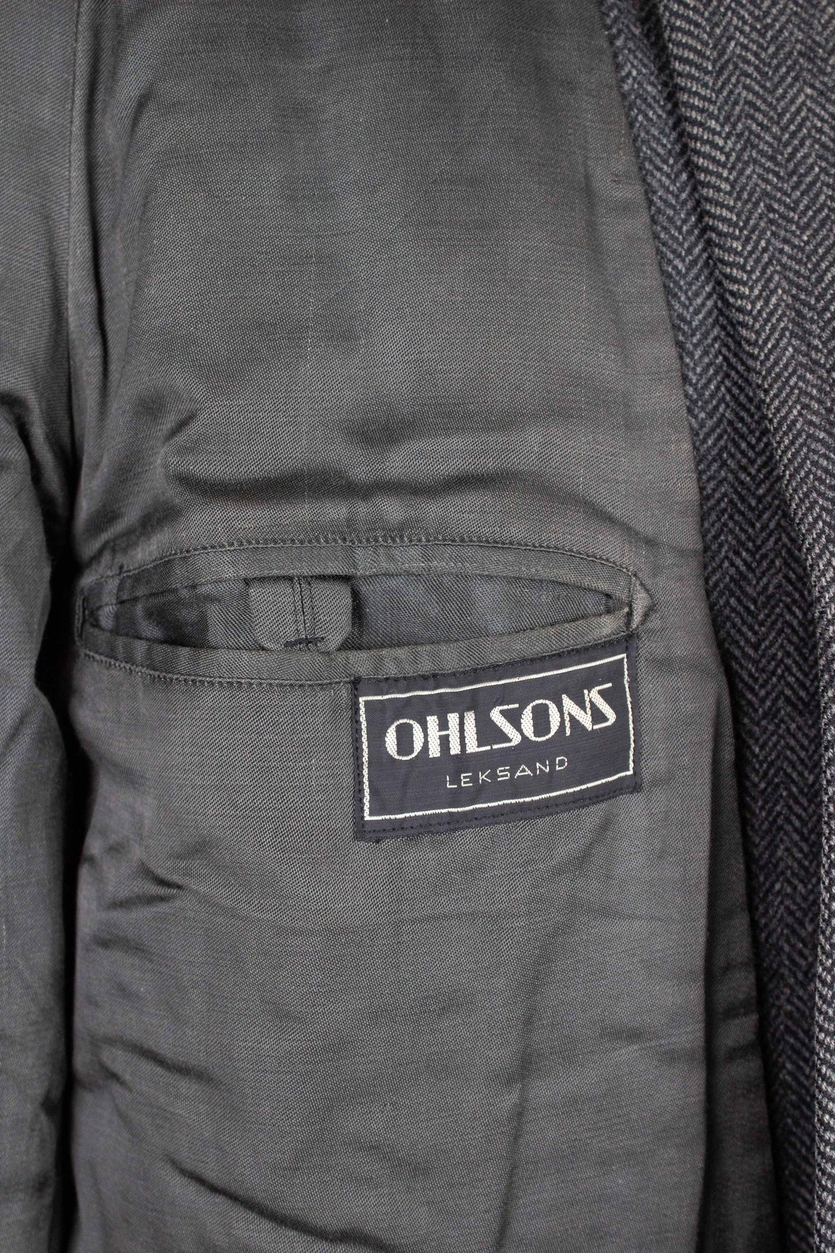 This raglan coat is of Swedish origin. It was made sometime during the 1940s, or possibly the early 1950s. The brand is Junex, and it was originally sold at Ohlsons in Leksand, Dalarna - a shop that, in fact, still exists today. It is made from a heavy grey wool fabric with a distinctly pronounced herringbone structure.