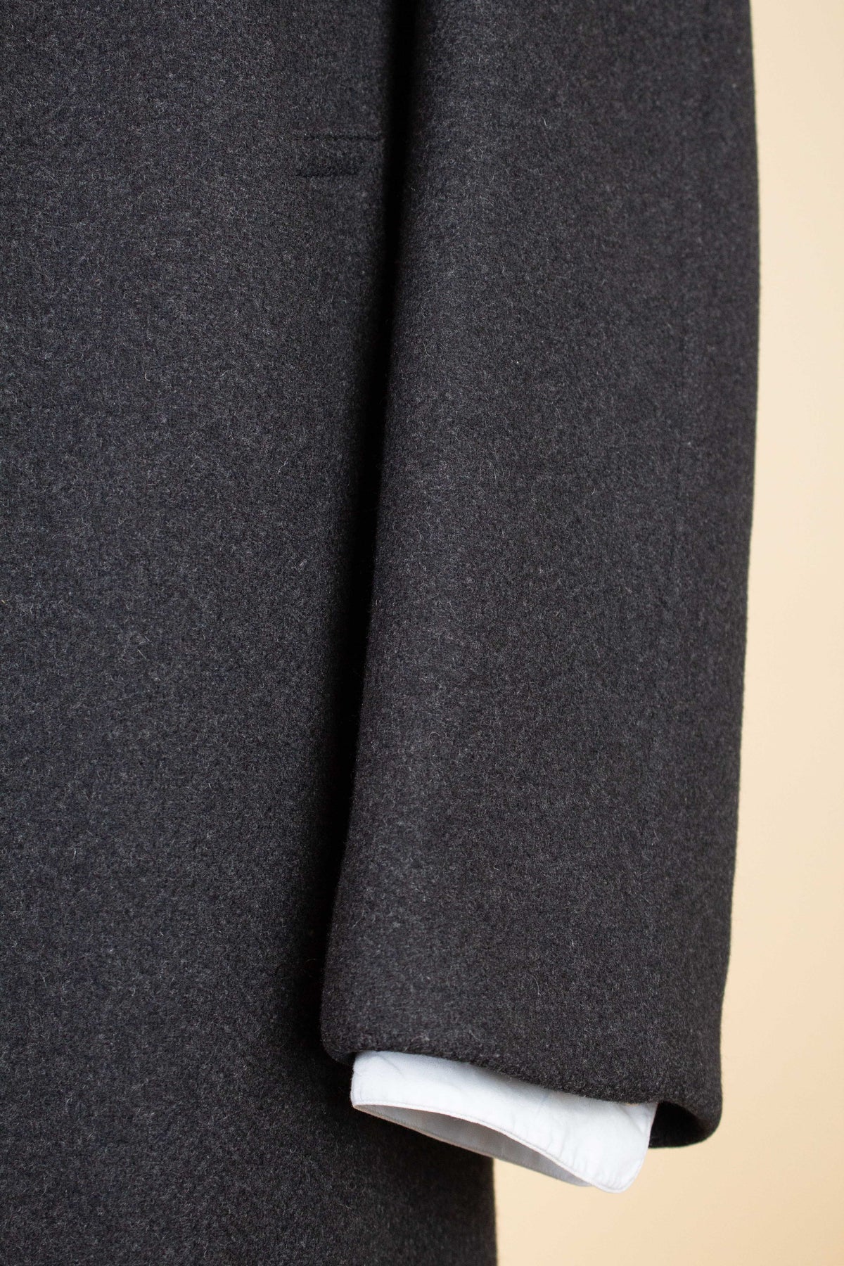 In terms of size, it sits between an EU 46 (UK/US 36) and an EU 48 (UK/US 38). As is always the case with overcoats, the fit depends greatly on what garments are worn underneath. Note that our size indication assumes that a jacket is worn beneath. Please scroll down for the exact measurements.