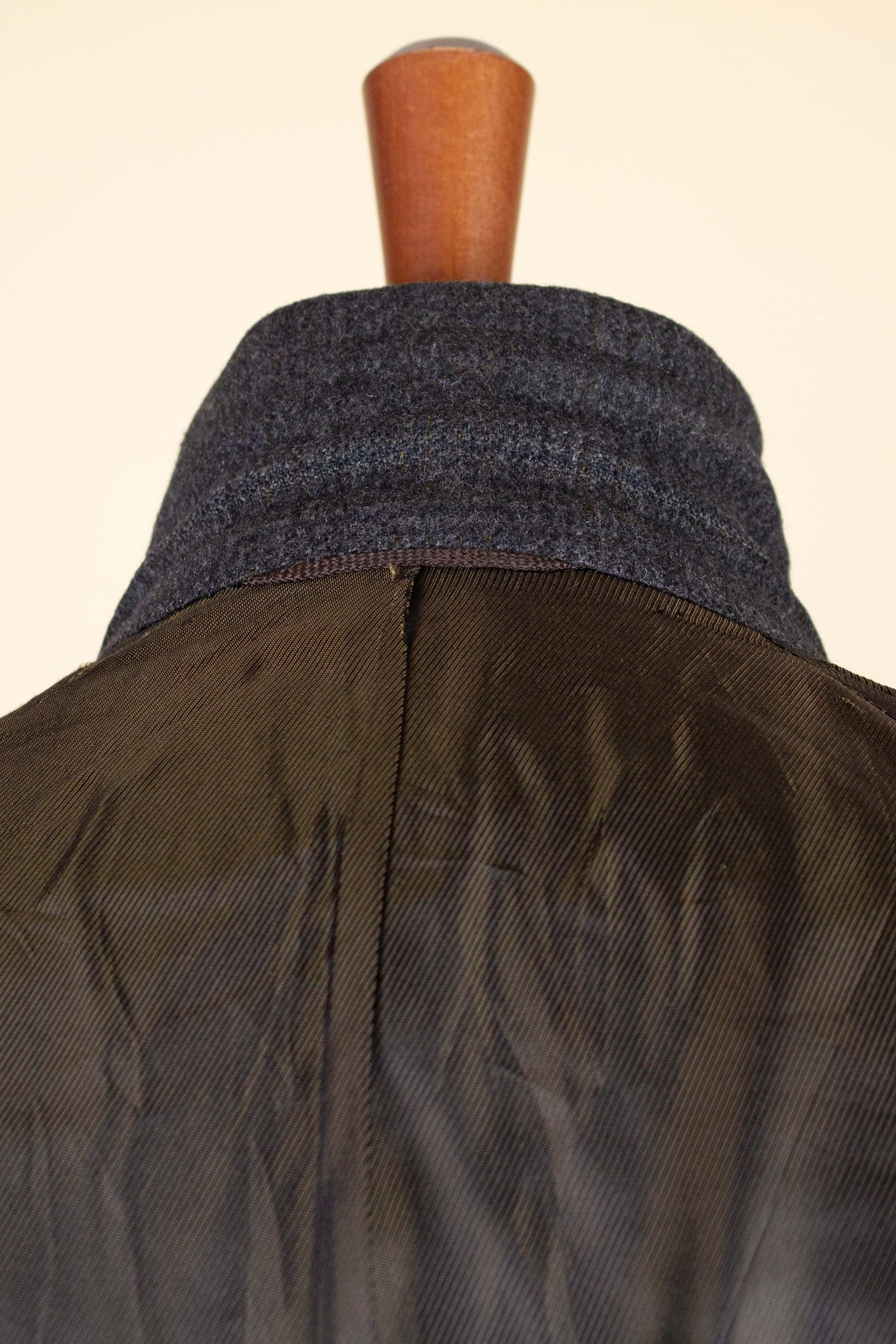 The cloth is noticeably lighter than what we usually see in Swedish coats from the same period. However, in our view it represents a standard cloth for an American coat of this era. The fact that it is half-lined also contributes to an overall lighter feel.