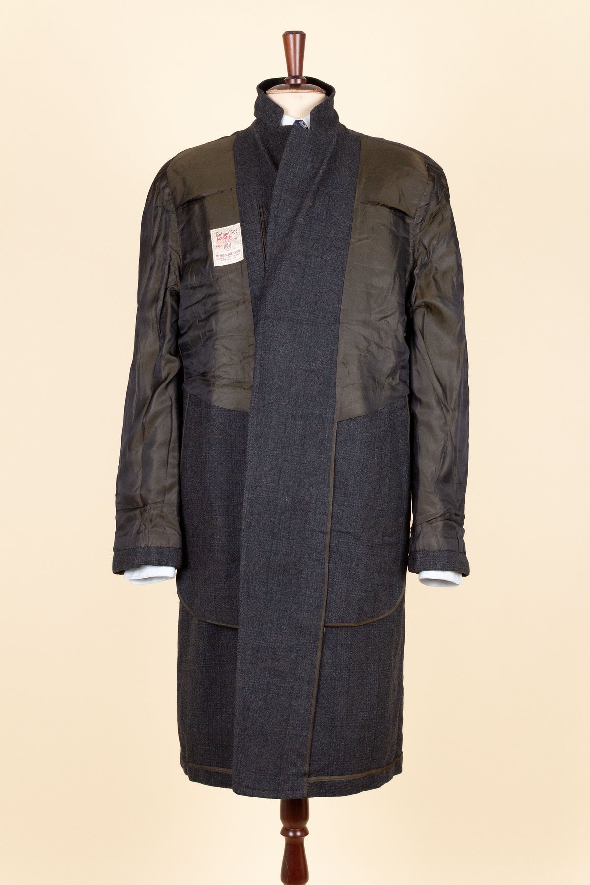 Inside the inner pocket, there is a label marked “39 LONG”. Judging by the chest measurement, the coat corresponds to a modern EU 48 (UK/US 38). The sleeve length helps explain the “LONG” designation, as the sleeves are slightly longer than standard for this size. Please scroll down for the exact measurements.