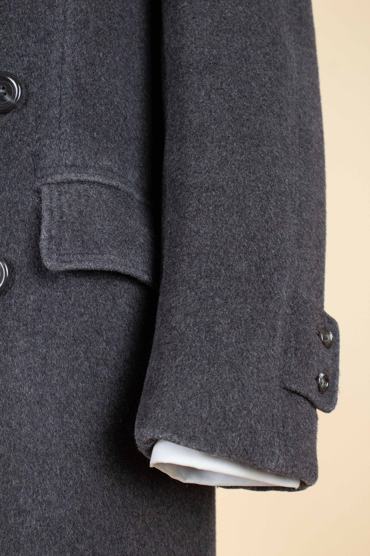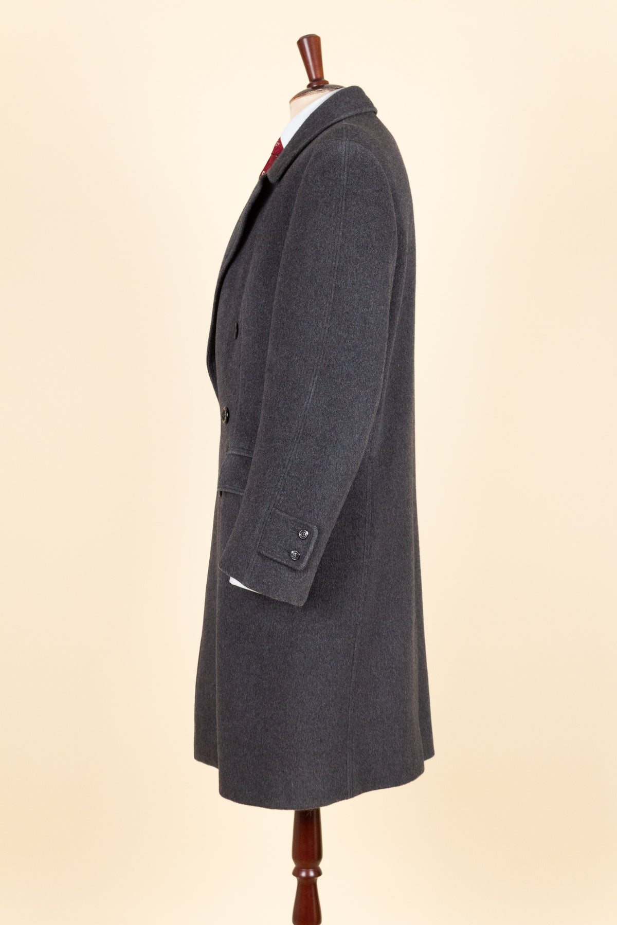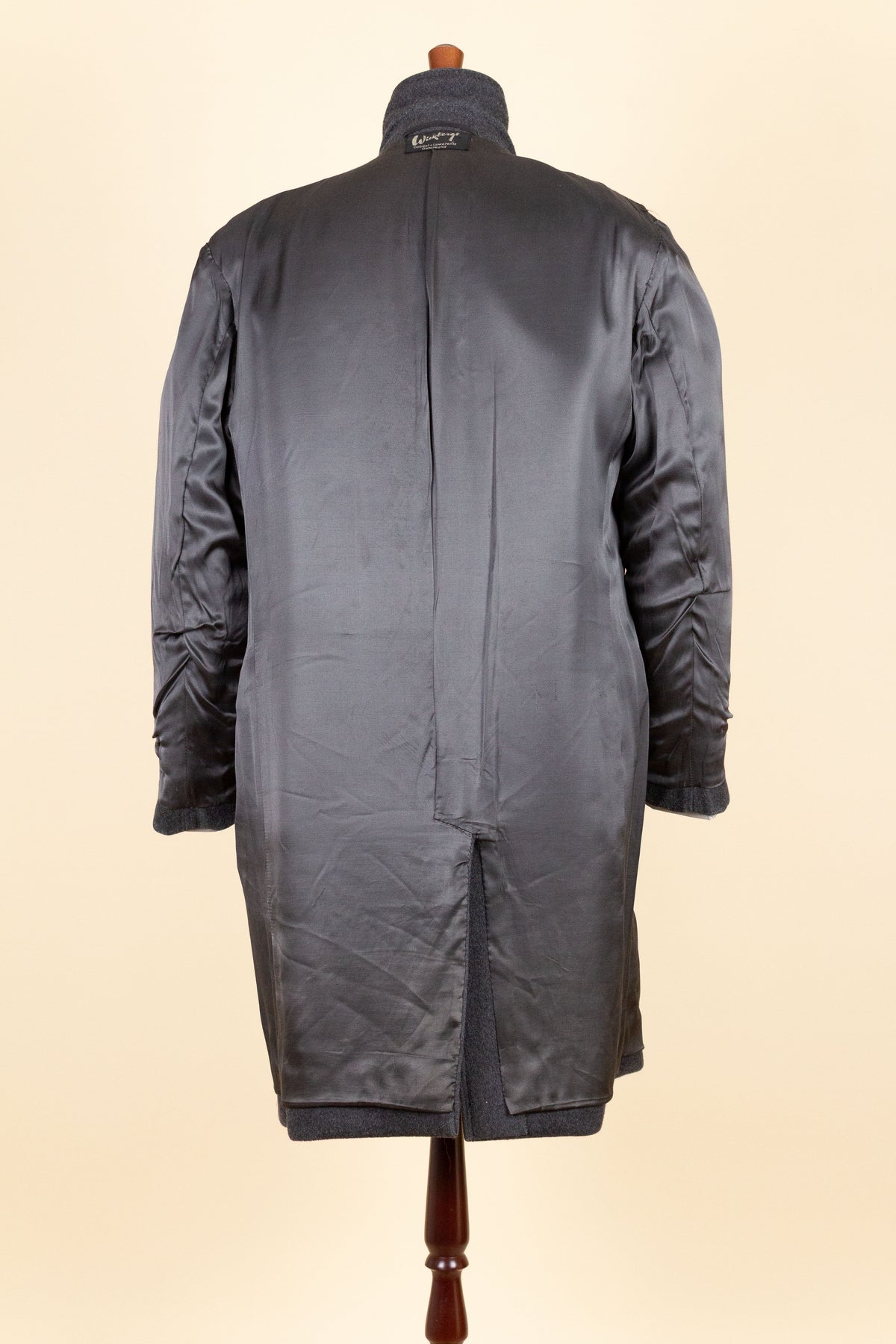 In terms of sizing, the coat corresponds to a modern EU 46 (US/UK 36). Please note that our size assessment assumes the coat is worn with a jacket underneath. Kindly scroll down for exact measurements.