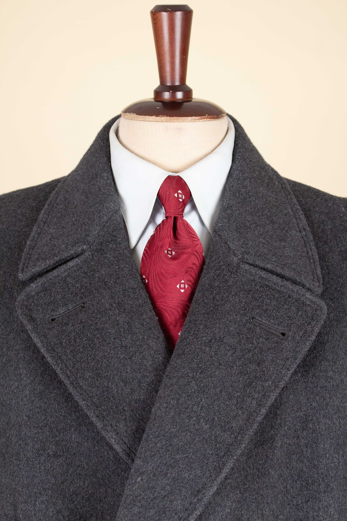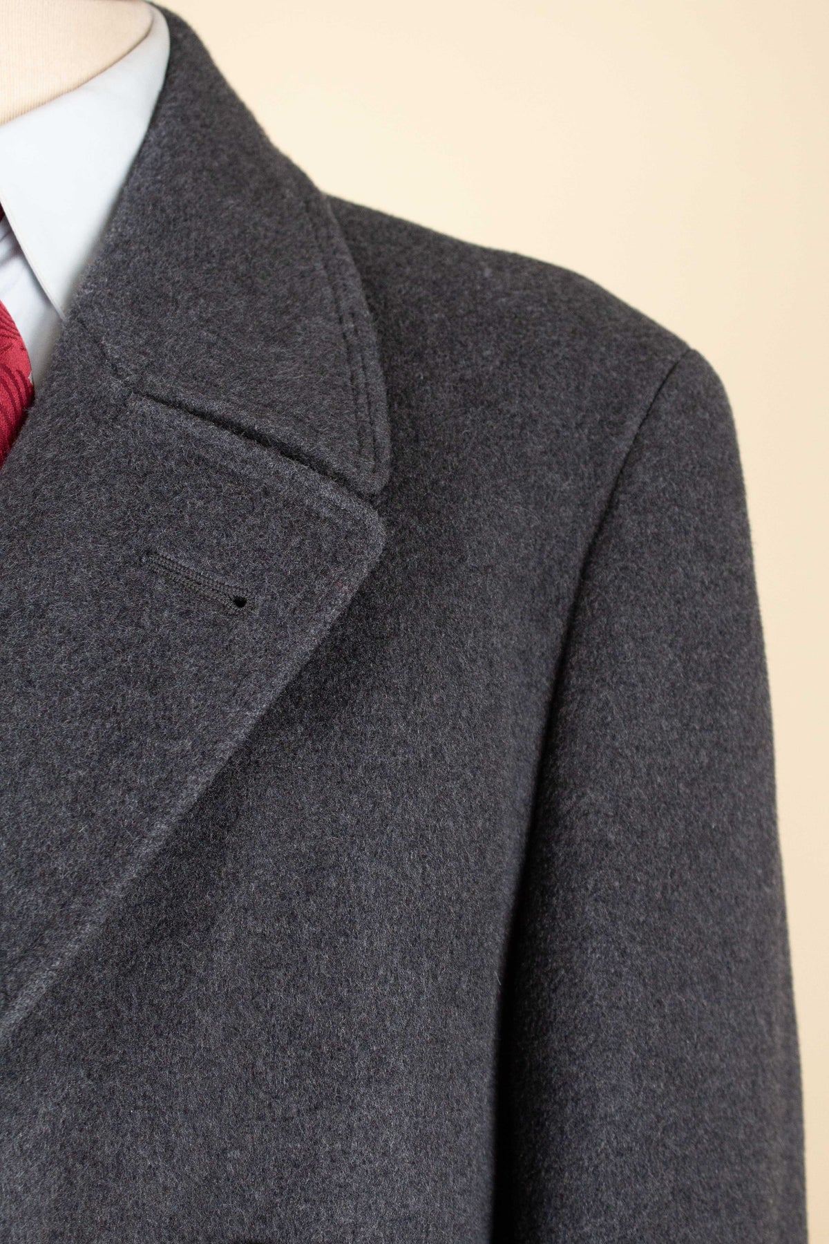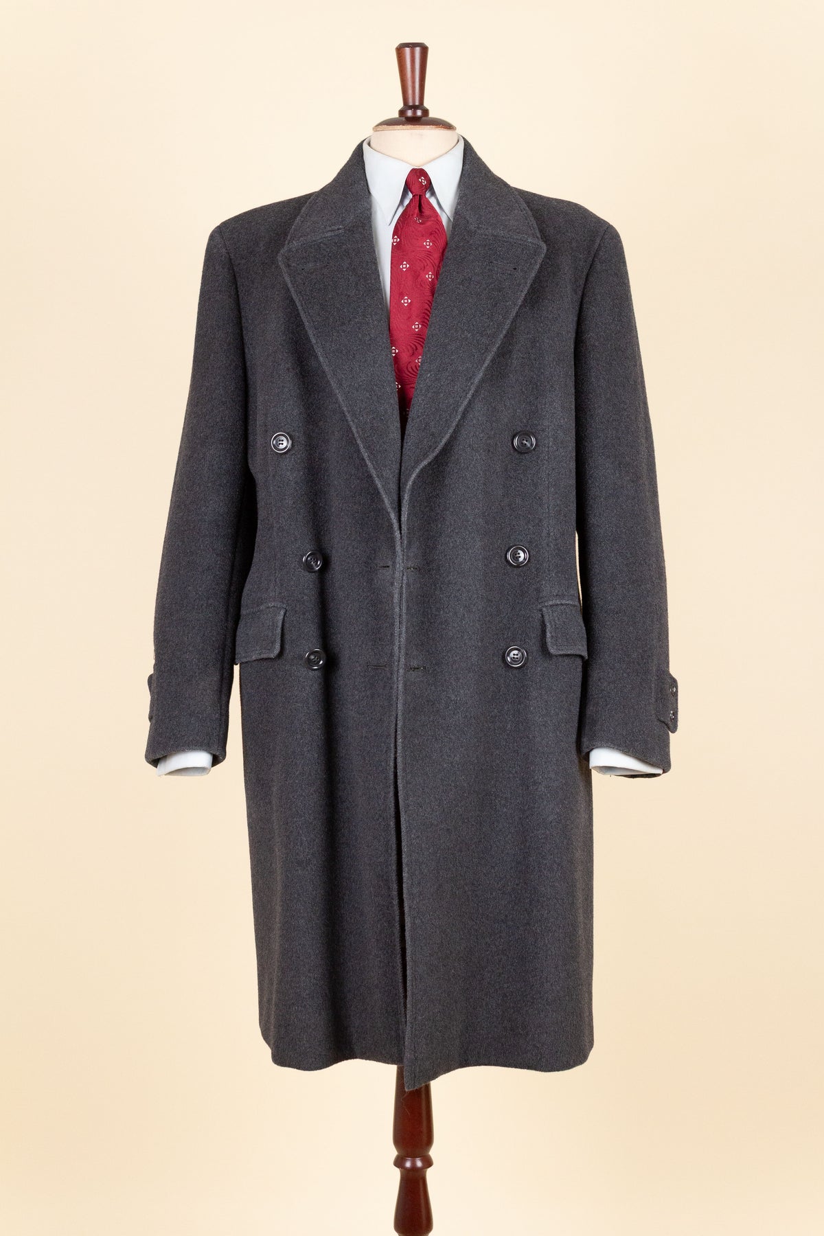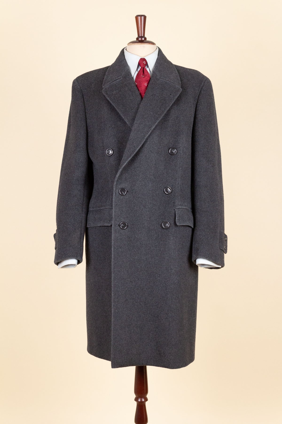In terms of sizing, the coat corresponds to a modern EU 46 (US/UK 36). Please note that our size assessment assumes the coat is worn with a jacket underneath. Kindly scroll down for exact measurements.