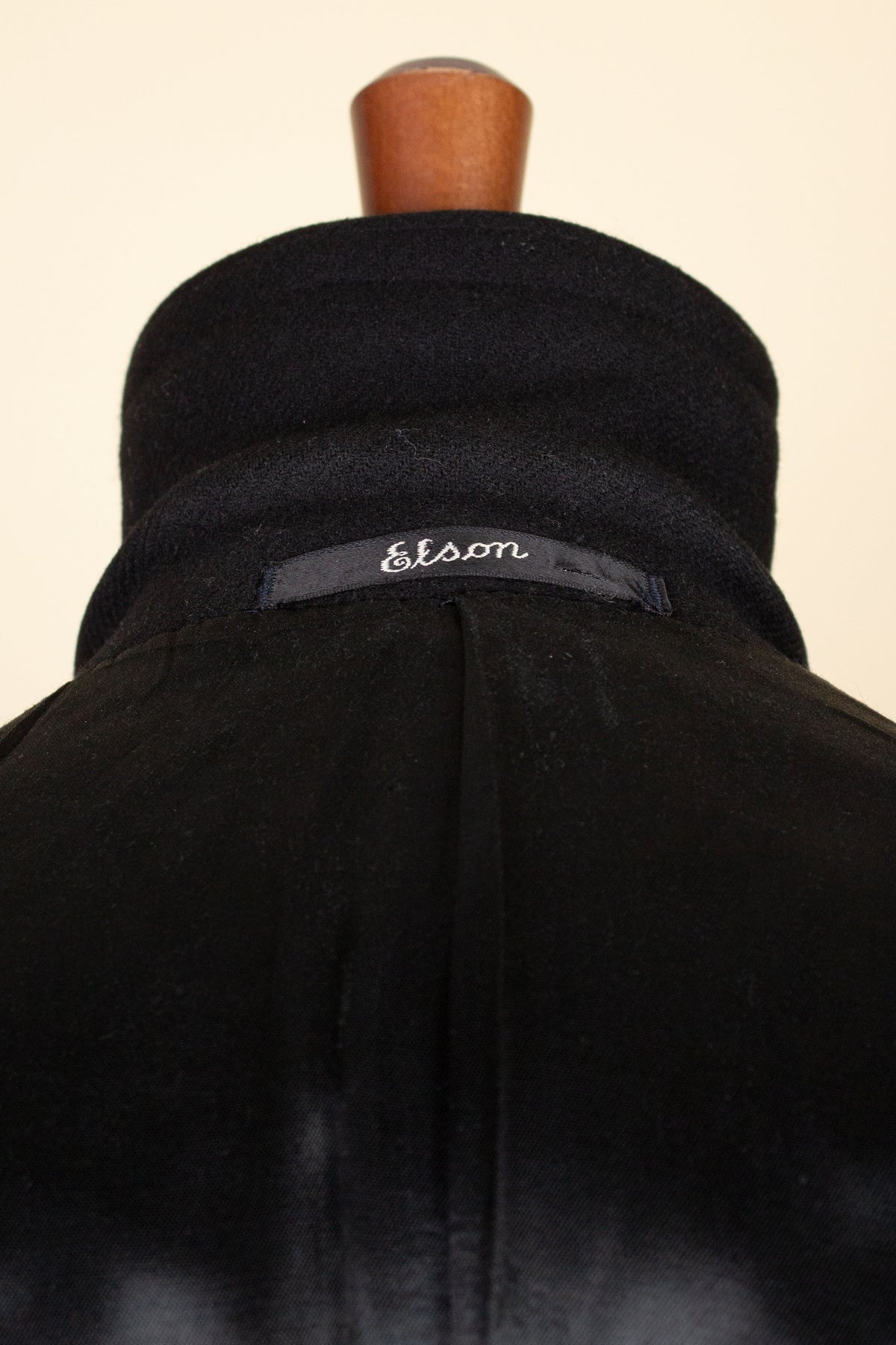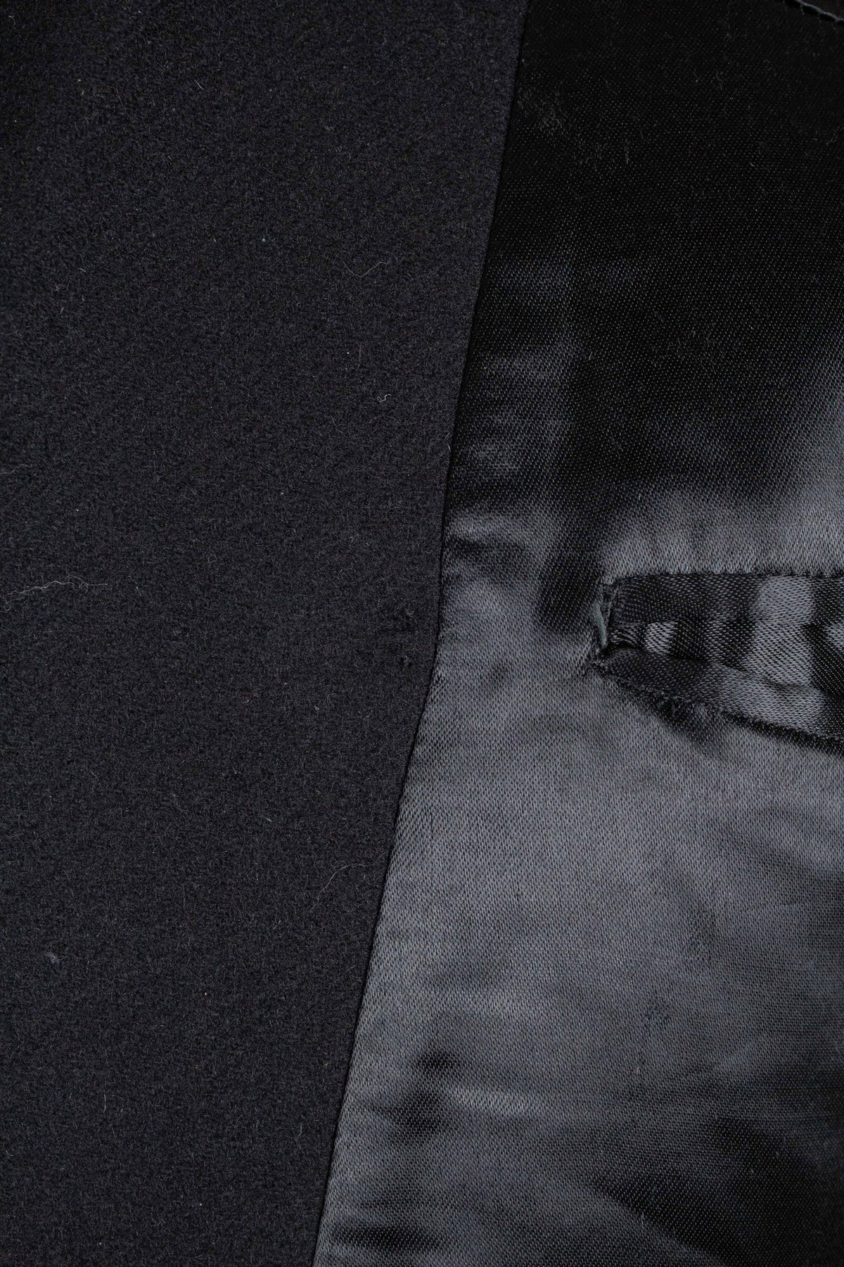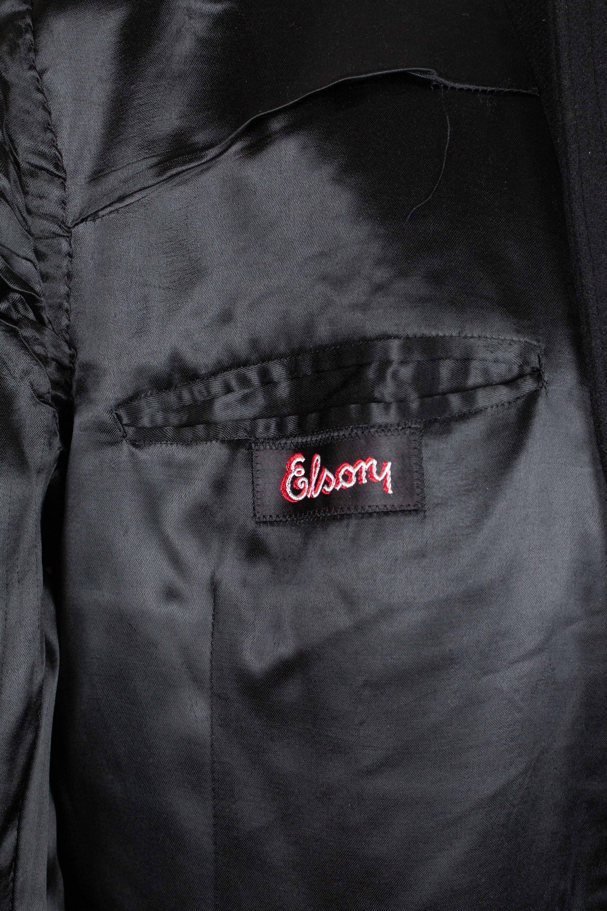 This suit is of Swedish origin and was most likely made in the late 1940s. It is from the brand Elson, a well-known Swedish ready-to-wear label. The suit is crafted from black wool with a subtle twill texture.
