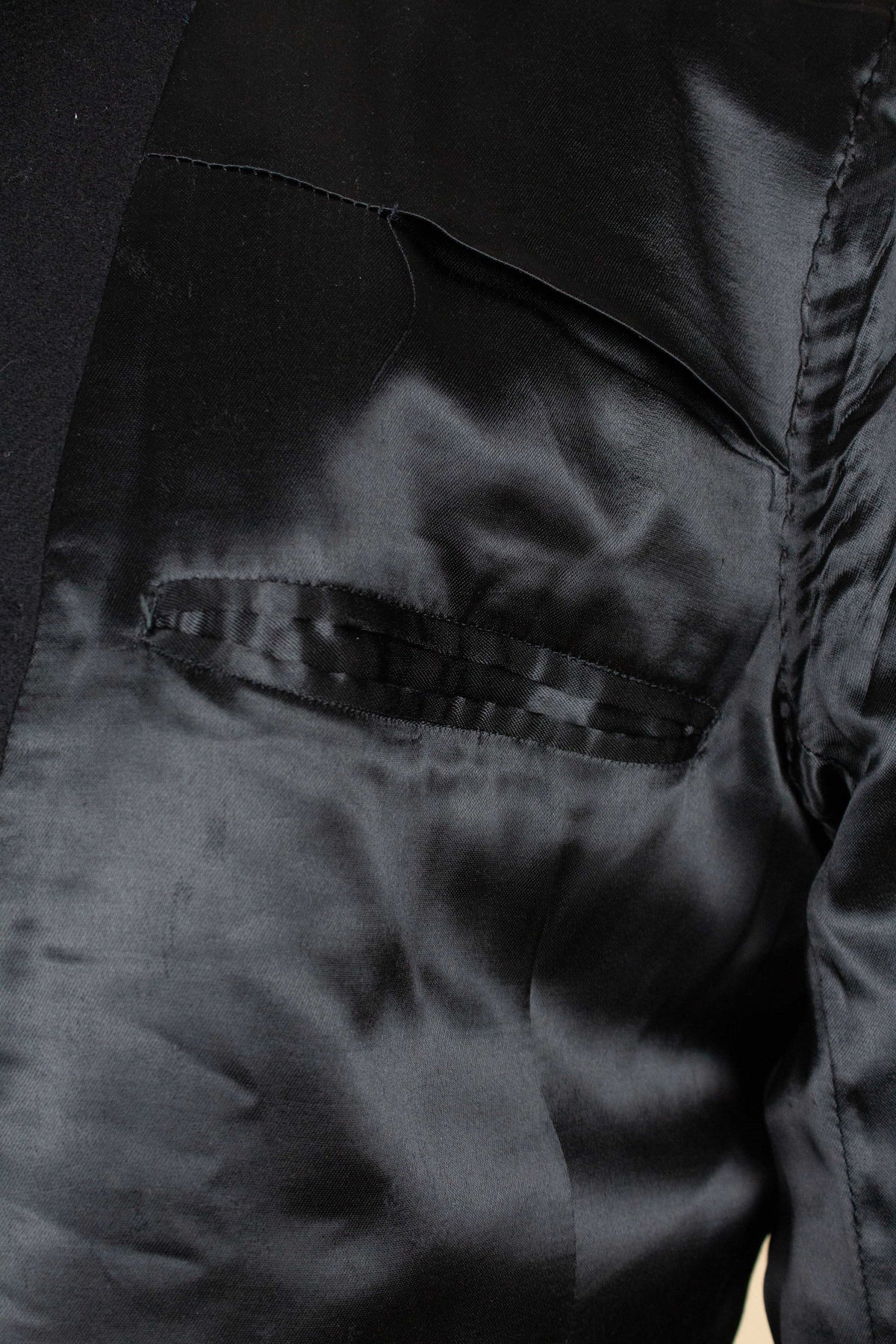 Overall, the condition is excellent. There is only one minor flaw to note: a small damage in the fabric on the inside of one lapel. This is not visible when the jacket is worn. Please study the photos carefully to form your own impression of the condition.