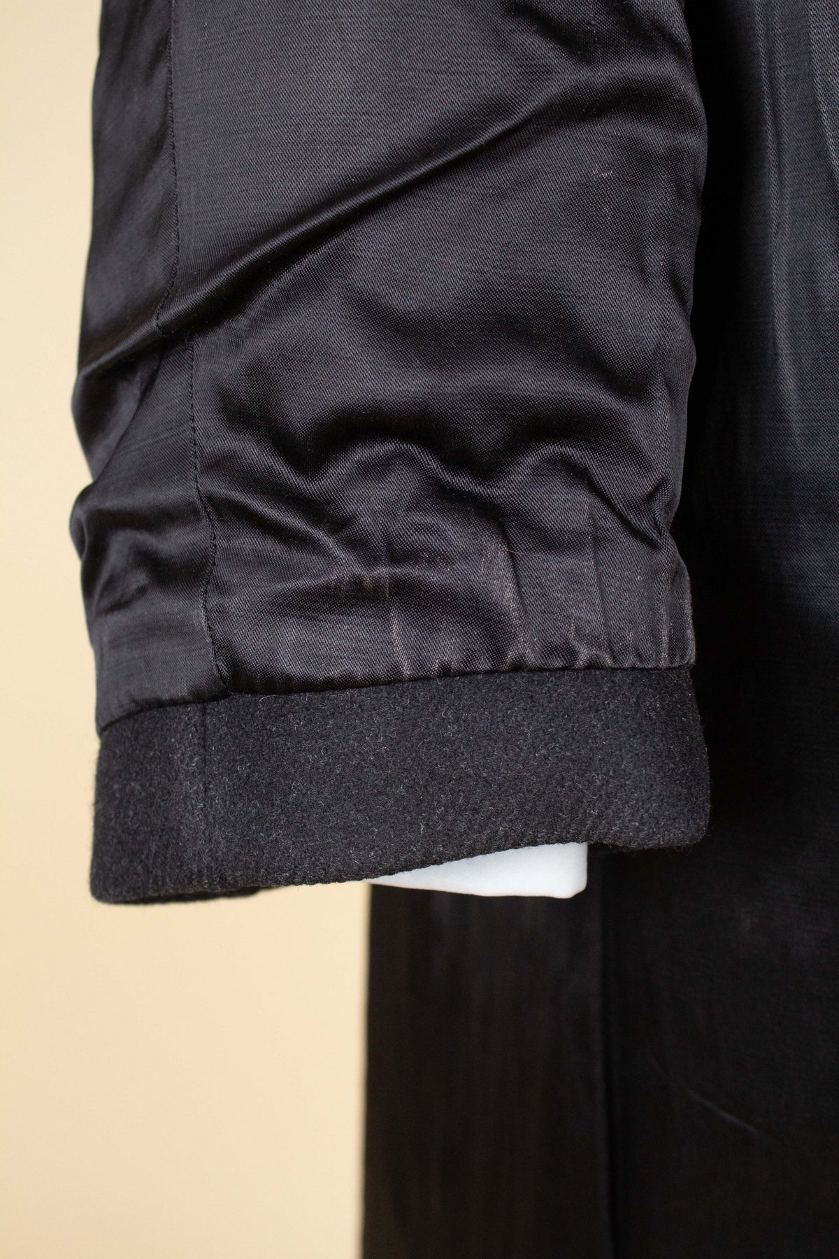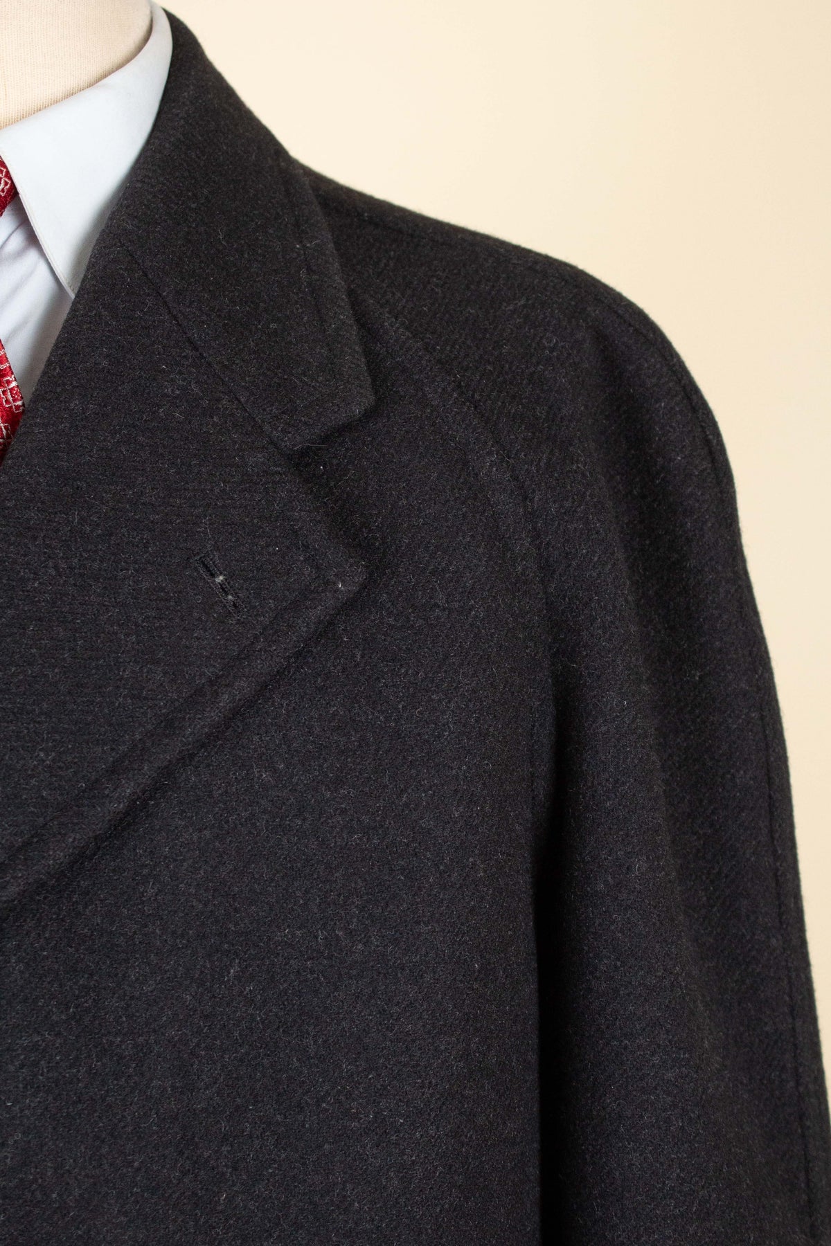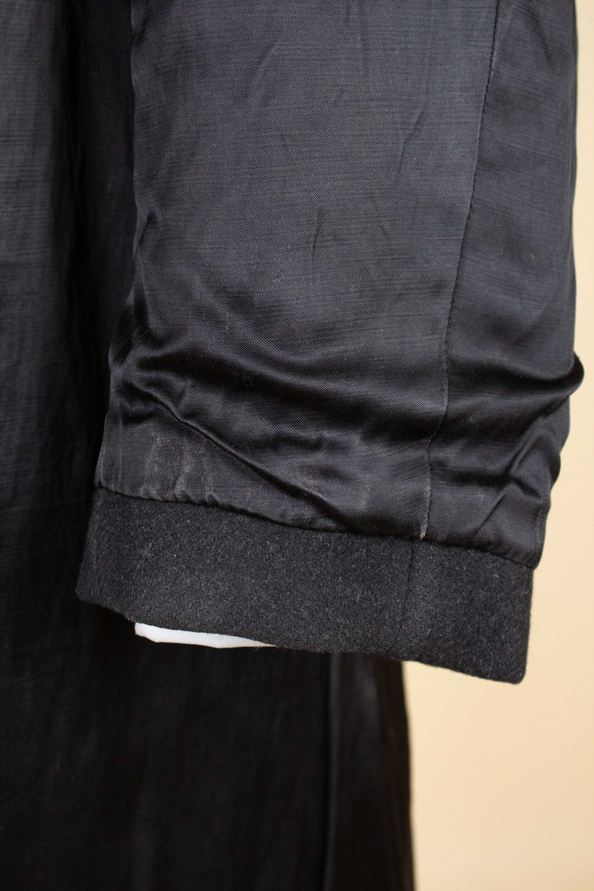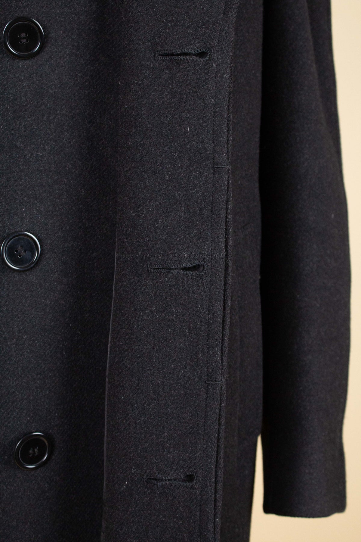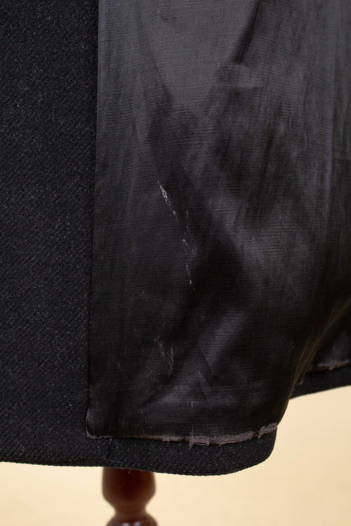 Overall, the coat is in good condition. Upon closer inspection, however, minor signs of wear can be observed. For example, one buttonhole has been repaired, and there is some wear to the lining in a few areas. Please study the images carefully to form your own assessment of the condition.