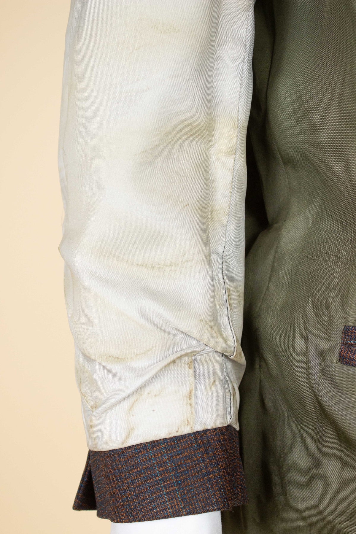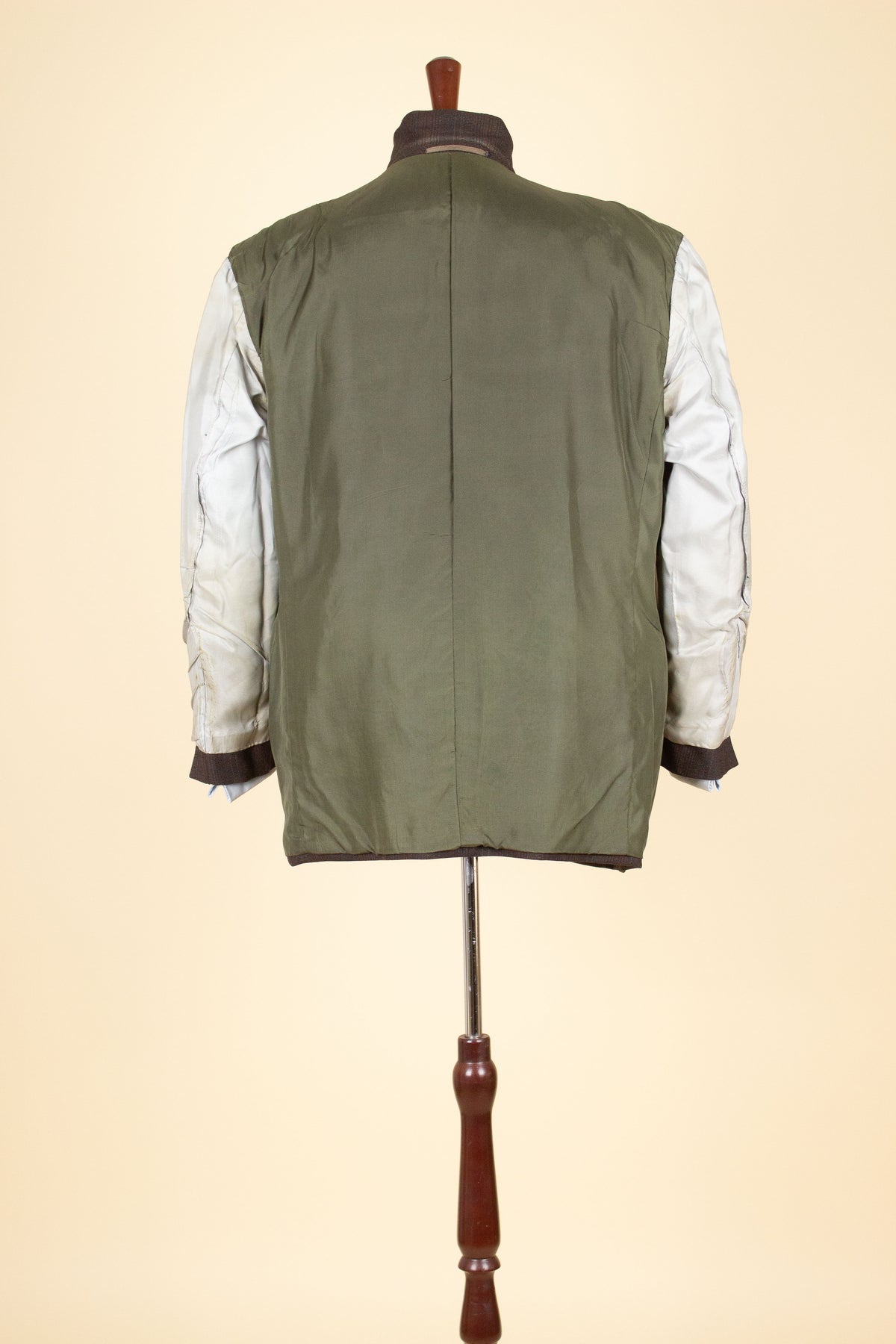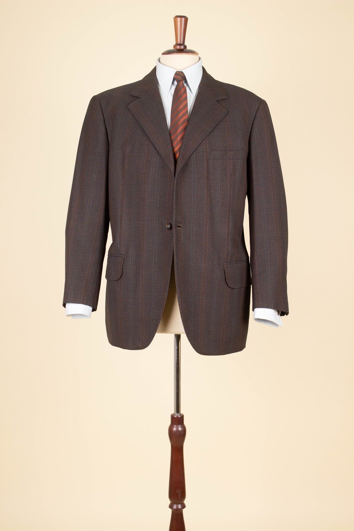 The size of the jacket would best be described as a modern size EU 50 (US/UK 40). The trousers are slightly larger, closer to a EU 52 (US/UK 42). Please scroll down for exact measurements and seam allowance.