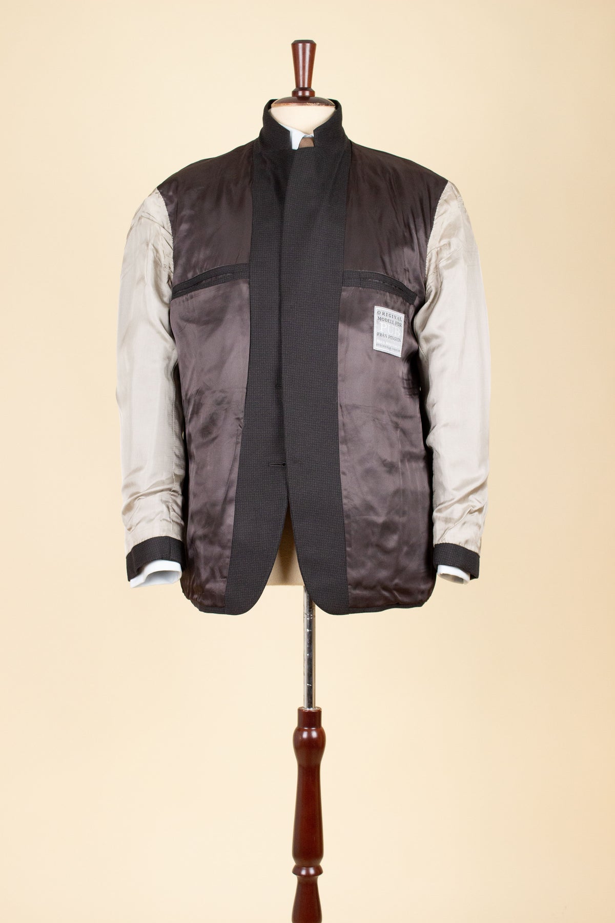 This suit corresponds to a modern EU size 50 (UK/US40). There is some extra fabric available in the trousers that allows for letting out both the waist and the length, if needed. Please scroll down for exact measurements and seam allowances.