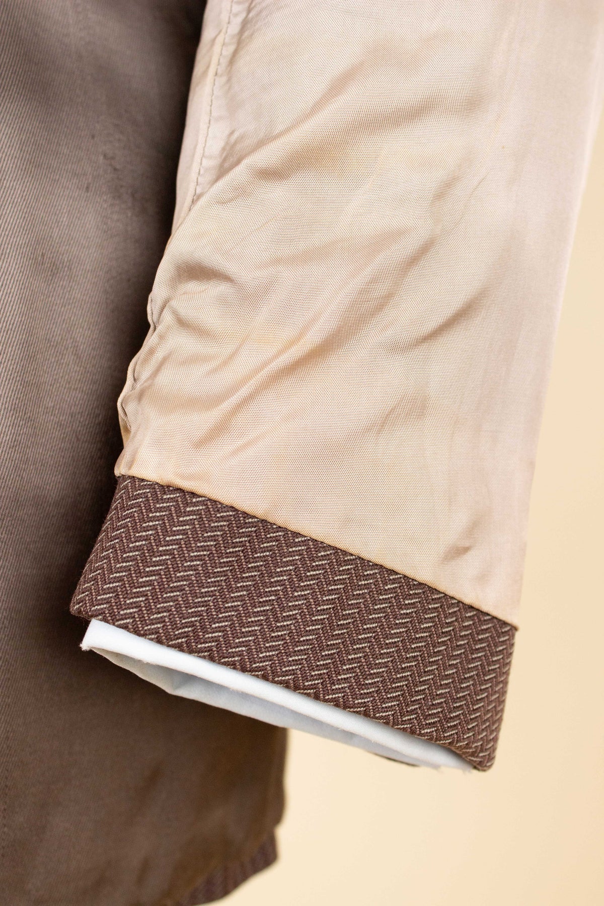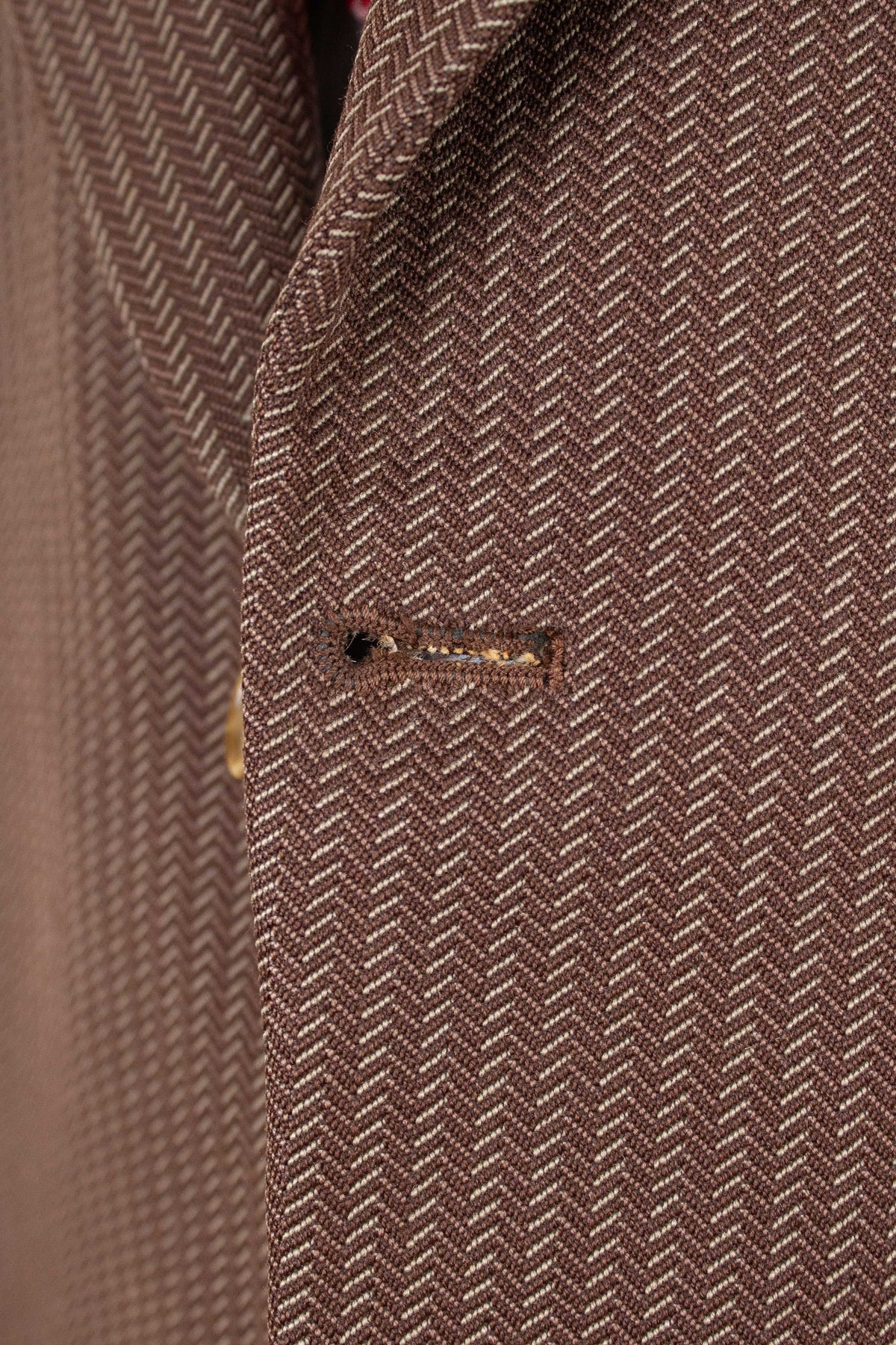 That said, there are no visible holes in the fabric – which is something one might expect in a garment of this age. If fact, most of the wear is on the inside. In our view, certain garments are worth accepting a bit of wear for, especially when they’re rare or visually distinctive. This suit is a prime example: the bold fabric draws attention away from the minor flaws, allowing you to appreciate the piece as a whole.