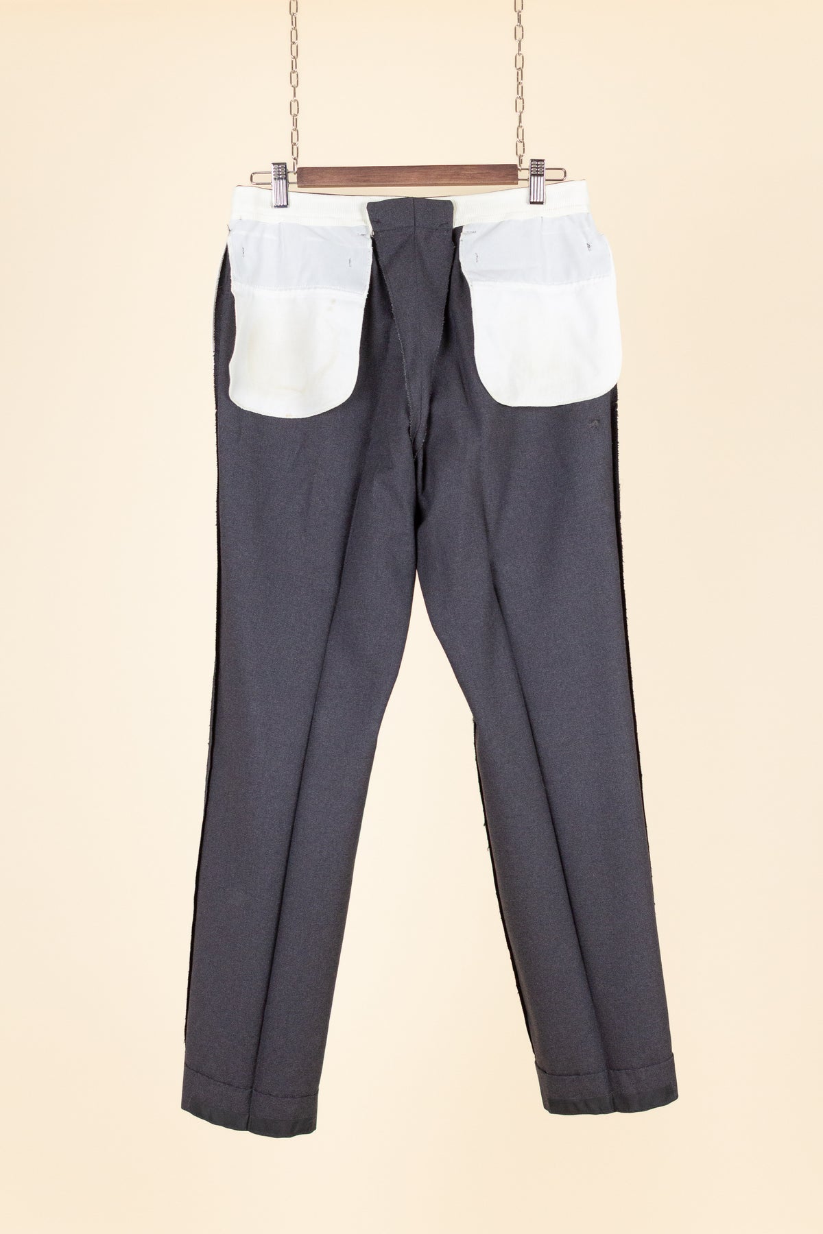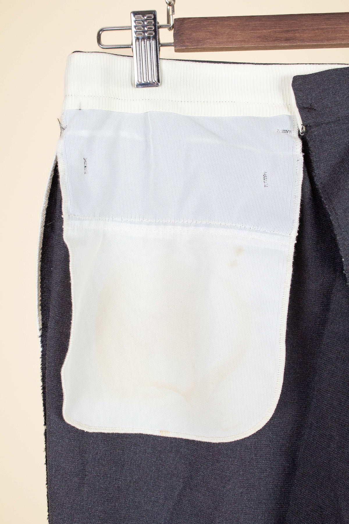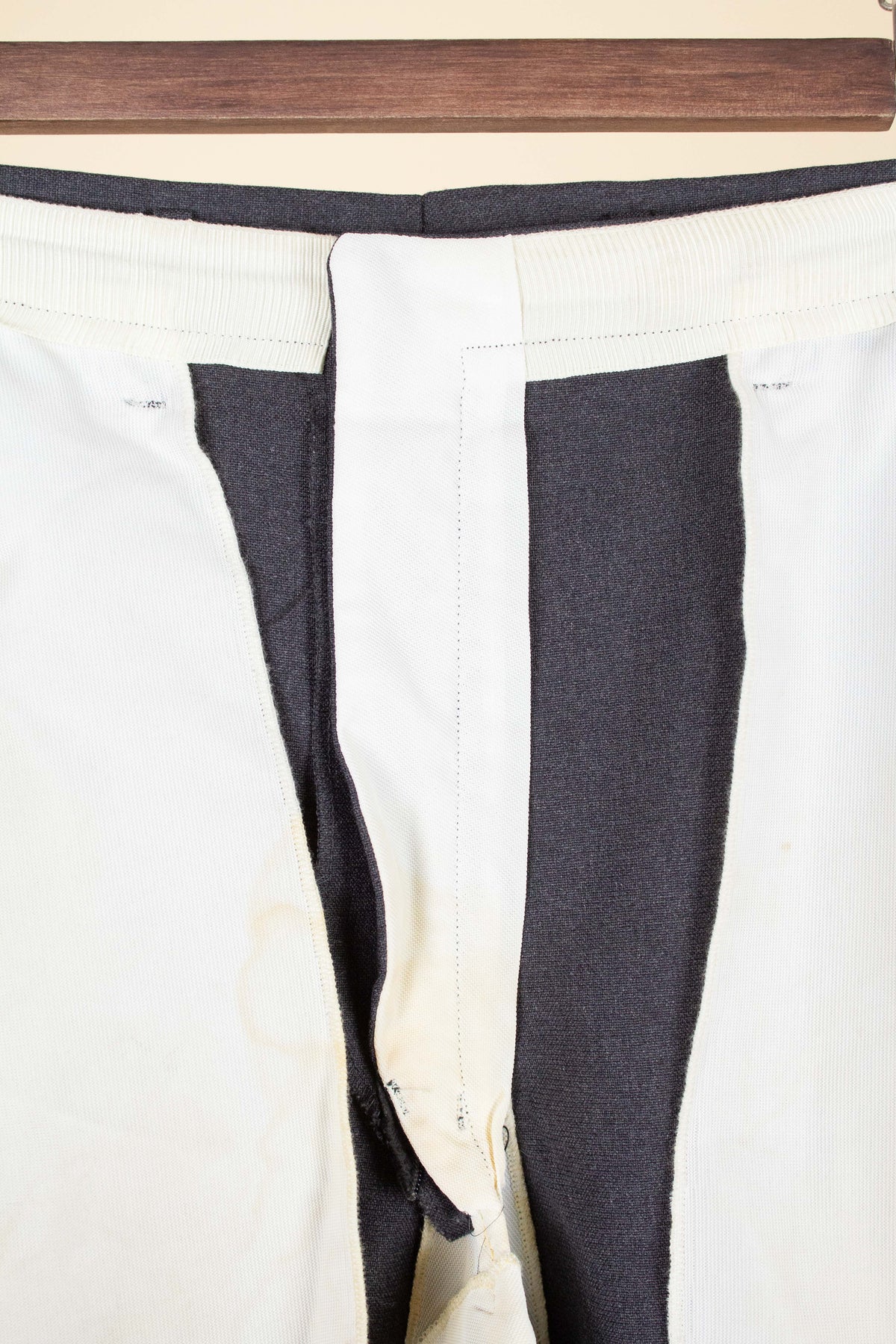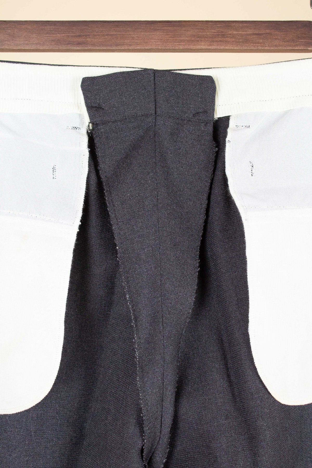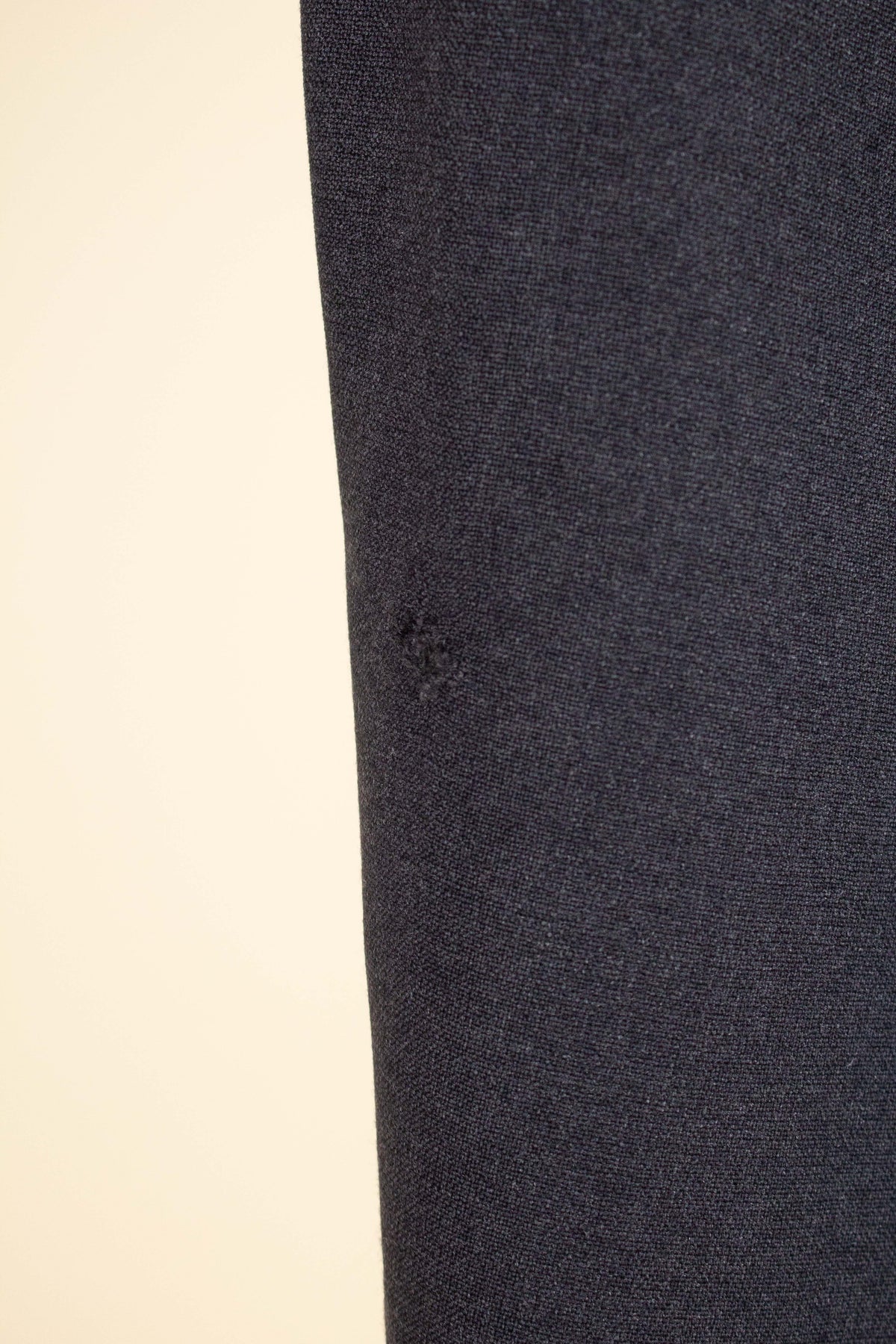 Overall, the suit is in good condition, except for a repair on one of the legs. This repair is located just below the left back pocket of the trousers. It is not particularly noticeable unless you are aware of it, but it should be considered when evaluating a potential purchase. Please study the images carefully to form your own assessment of the condition.