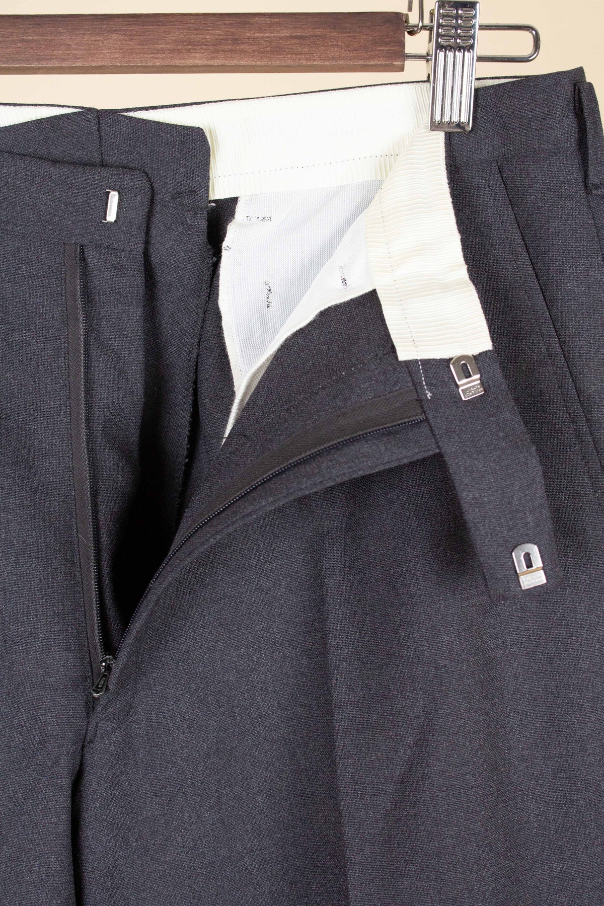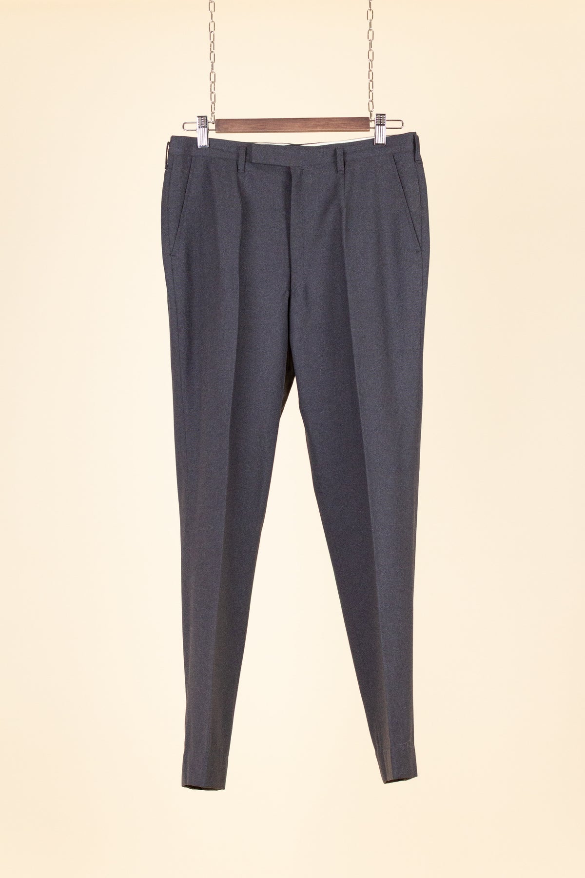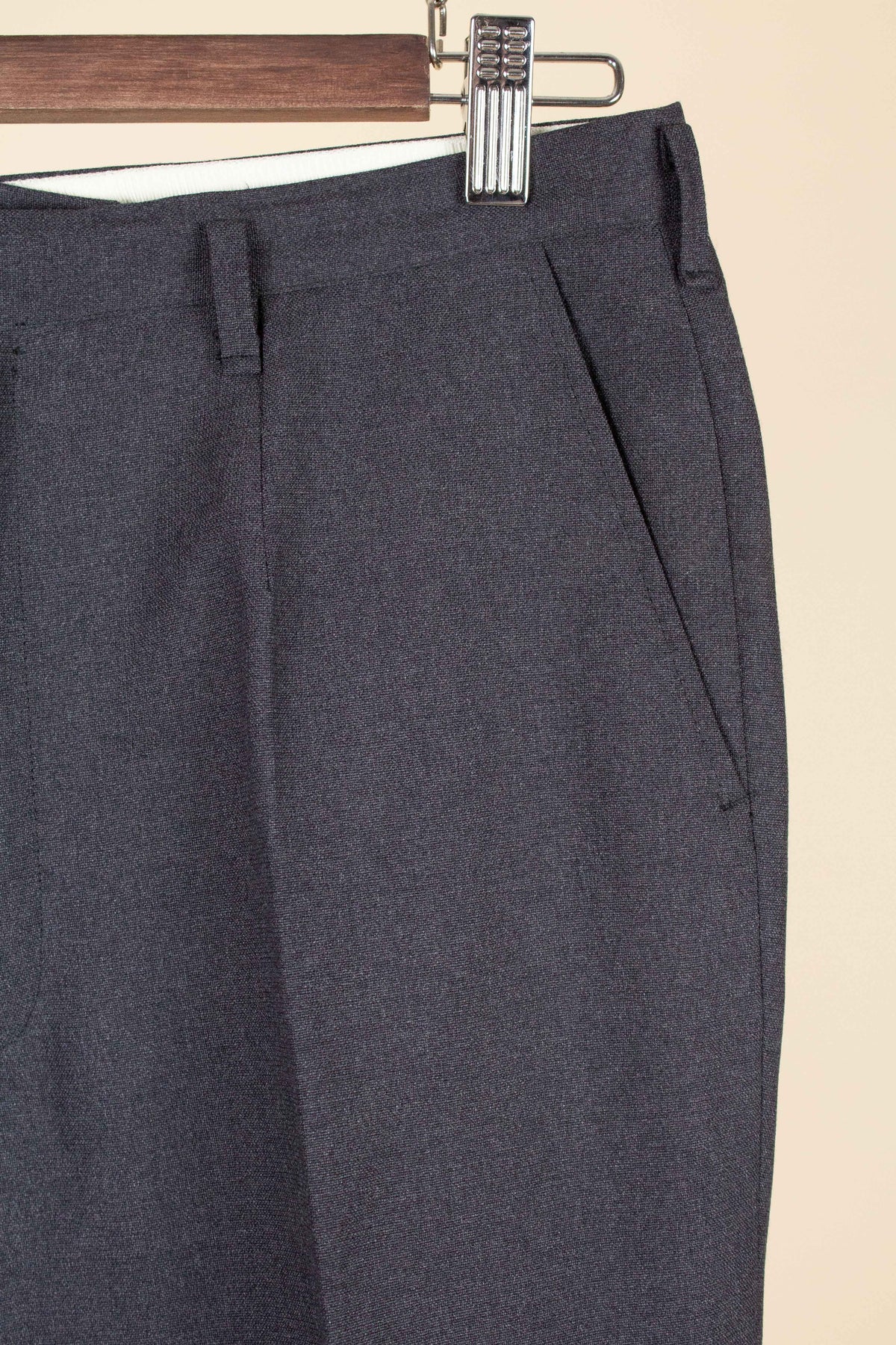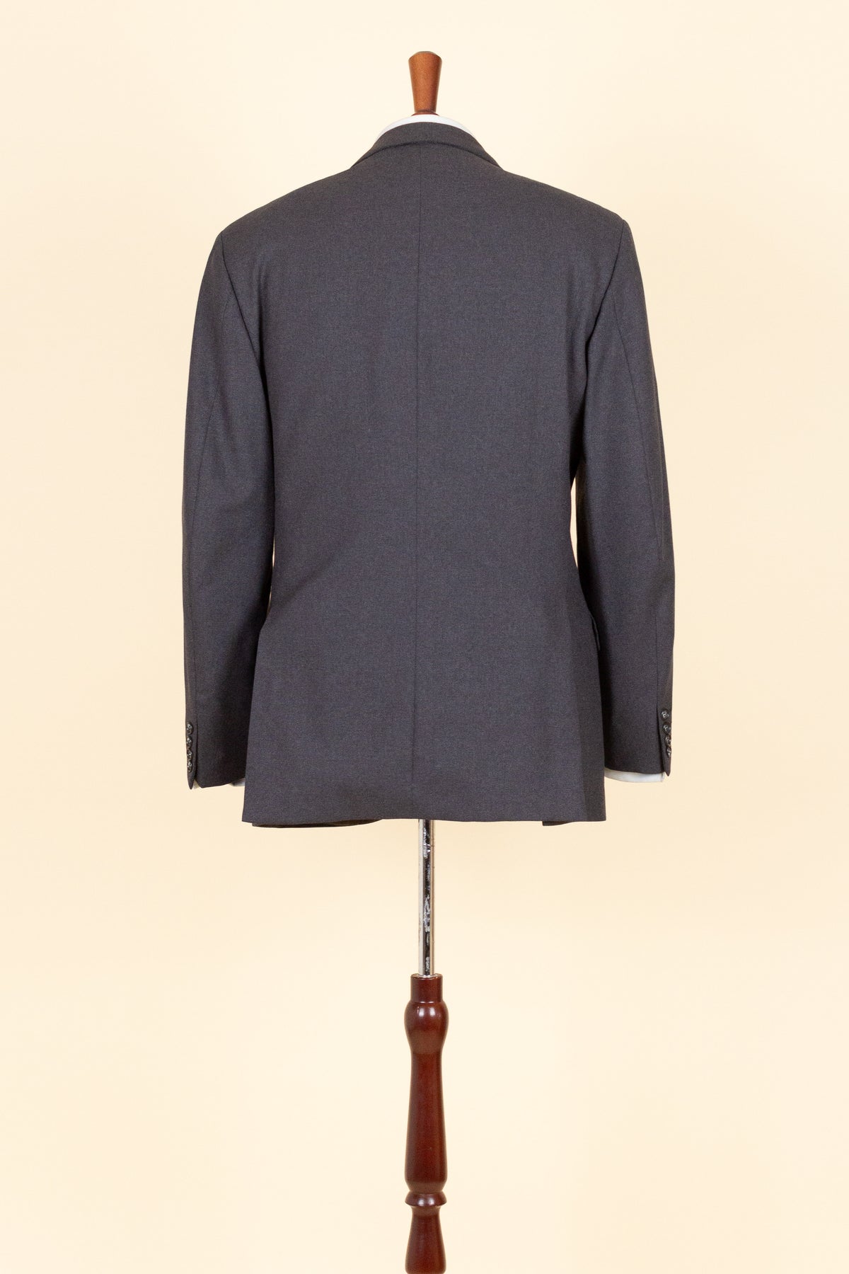 This suit is of Swedish origin, tailored sometime during the latter half of the 1960s by Pingvin, a Swedish ready-to-wear brand. It was originally sold at NK (Nordiska Kompaniet), a well-known department store in Stockholm that still exists today. The suit is made from a medium-grey fabric with a subtle heathered texture.