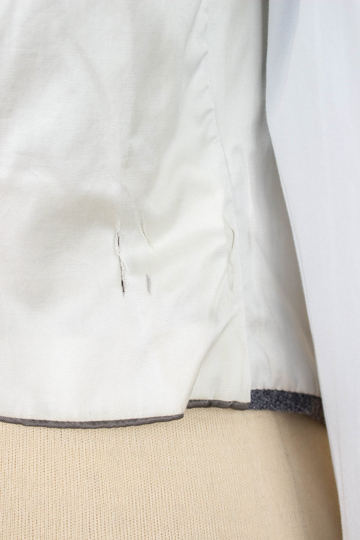 The overall condition is very good. As is often the case with vintage garments, a closer inspection reveals some minor imperfections – for instance, slight discolouration in the lining of both the jacket and the waistcoat. However, none of this is visible when the suit is worn, and the overall impression remains excellent. In summary, this is a fine example of Swedish tailoring and a faithful representative of its era.