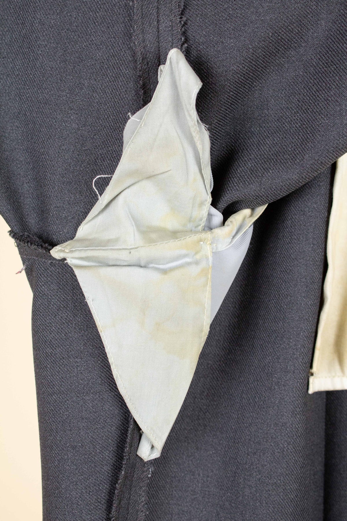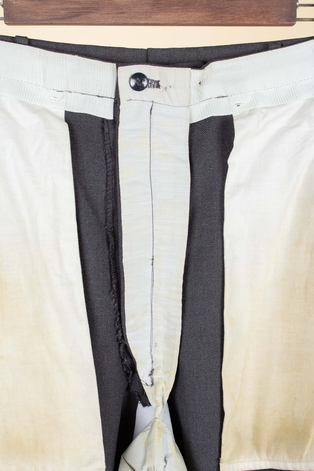 The condition is good, but there are a few minor points to note. There is some discolouration to the lining, especially in the pockets. There is also a small amount of pilling on the left leg. Please study the photographs and form your own opinion regarding the condition.