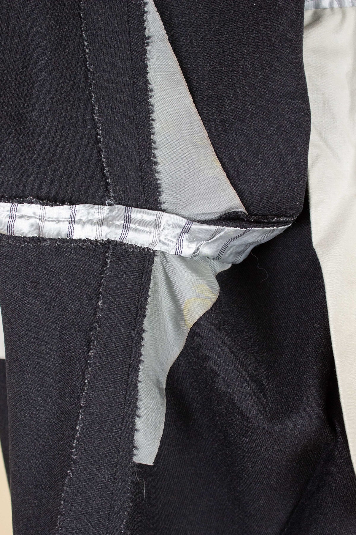In terms of size, it corresponds closely to a modern EU 48 (UK/US 38) for both the jacket and trousers. There is some extra fabric available to let out the trousers if needed, both at the waist and in the leg length. Please scroll down for the exact measurements and seam allowances.