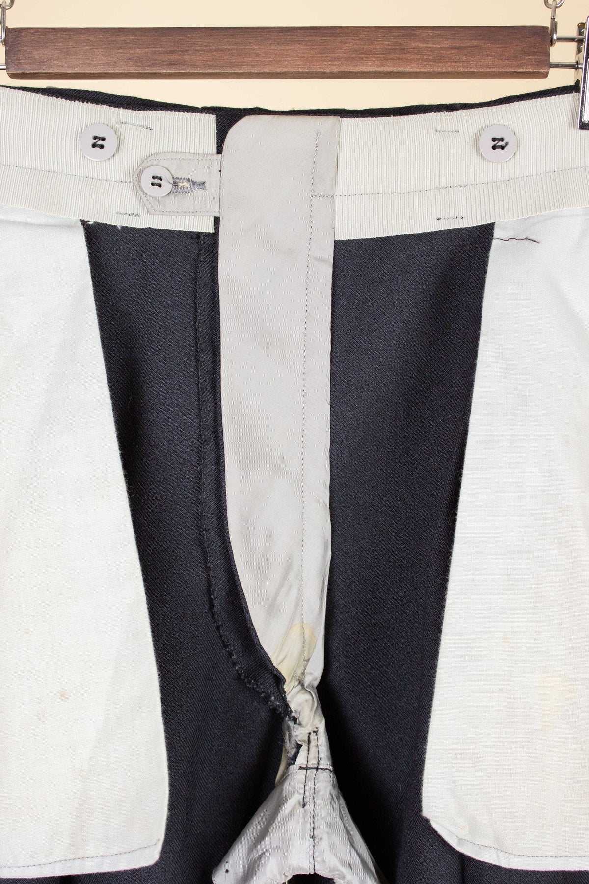 In terms of size, this suit corresponds to a modern EU 48 (UK/US 38). There is some fabric available to let out the trousers if needed — mainly in length but also a few centimetres in the waist. Please scroll down for exact measurements and seam allowances.