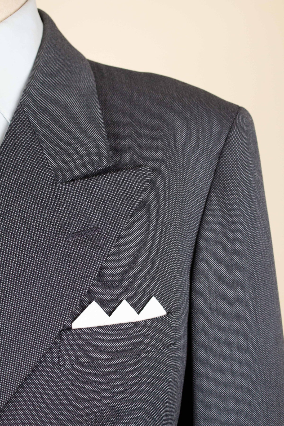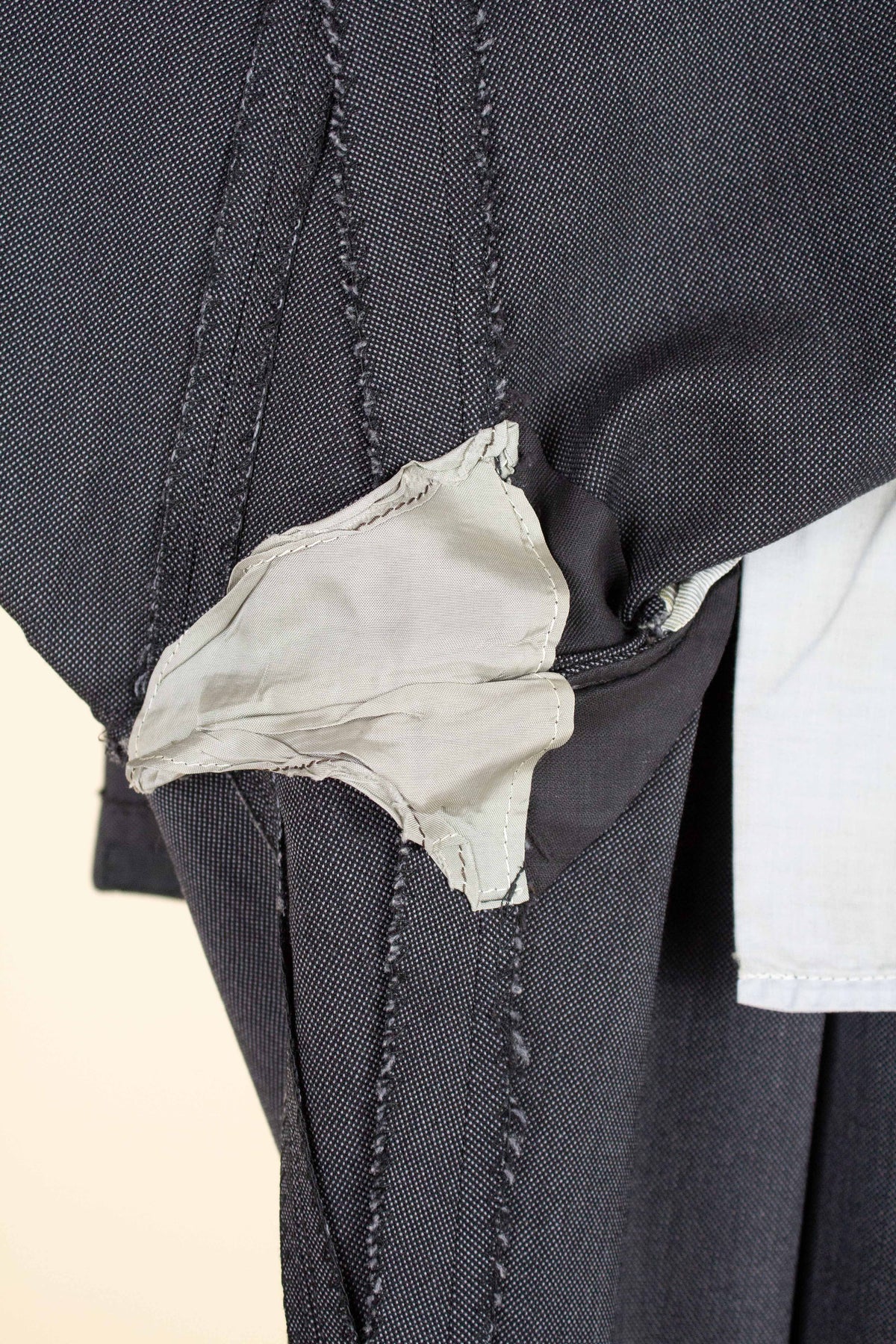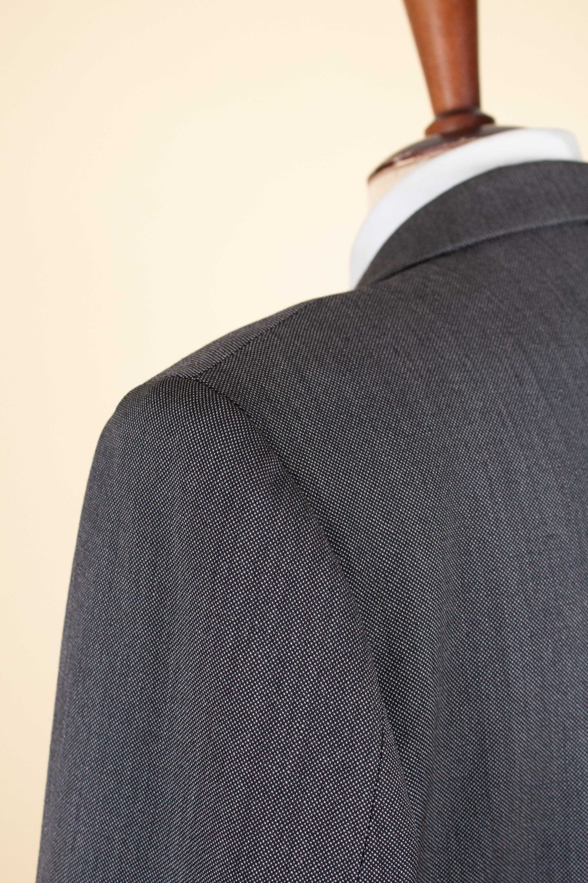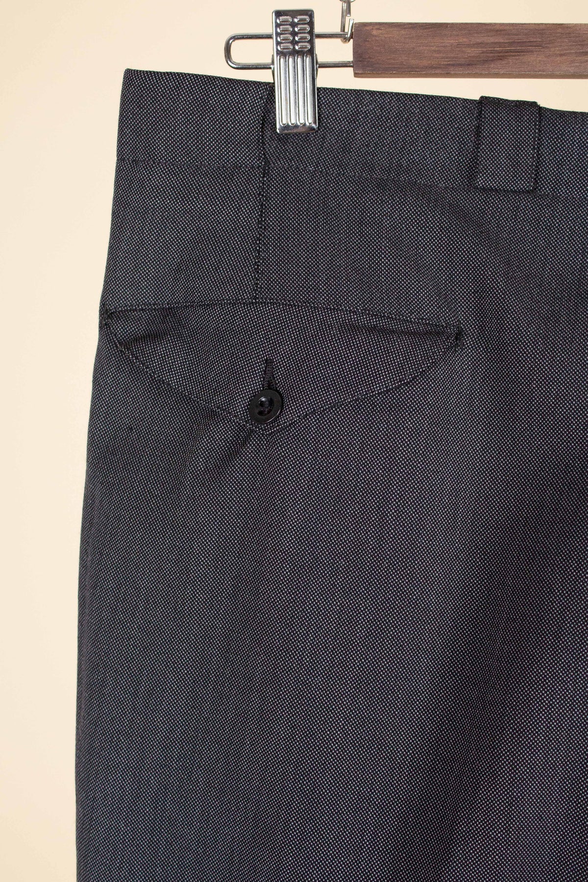 In terms of size, when considering both the jacket and the trousers, the suit falls between a modern EU 46 (UK/US 36) and an EU 48 (UK/US 38). Based on the jacket measurements, it corresponds to the larger of these sizes, while the trousers are closer to the smaller size when judged by the waist measurement. There is, however, a generous amount of cloth available to let out in the waist if desired. Such an alteration would allow both pieces to match in size, corresponding roughly to an EU 48 (UK/US38). Please scroll down for the exact measurements and seam allowances.