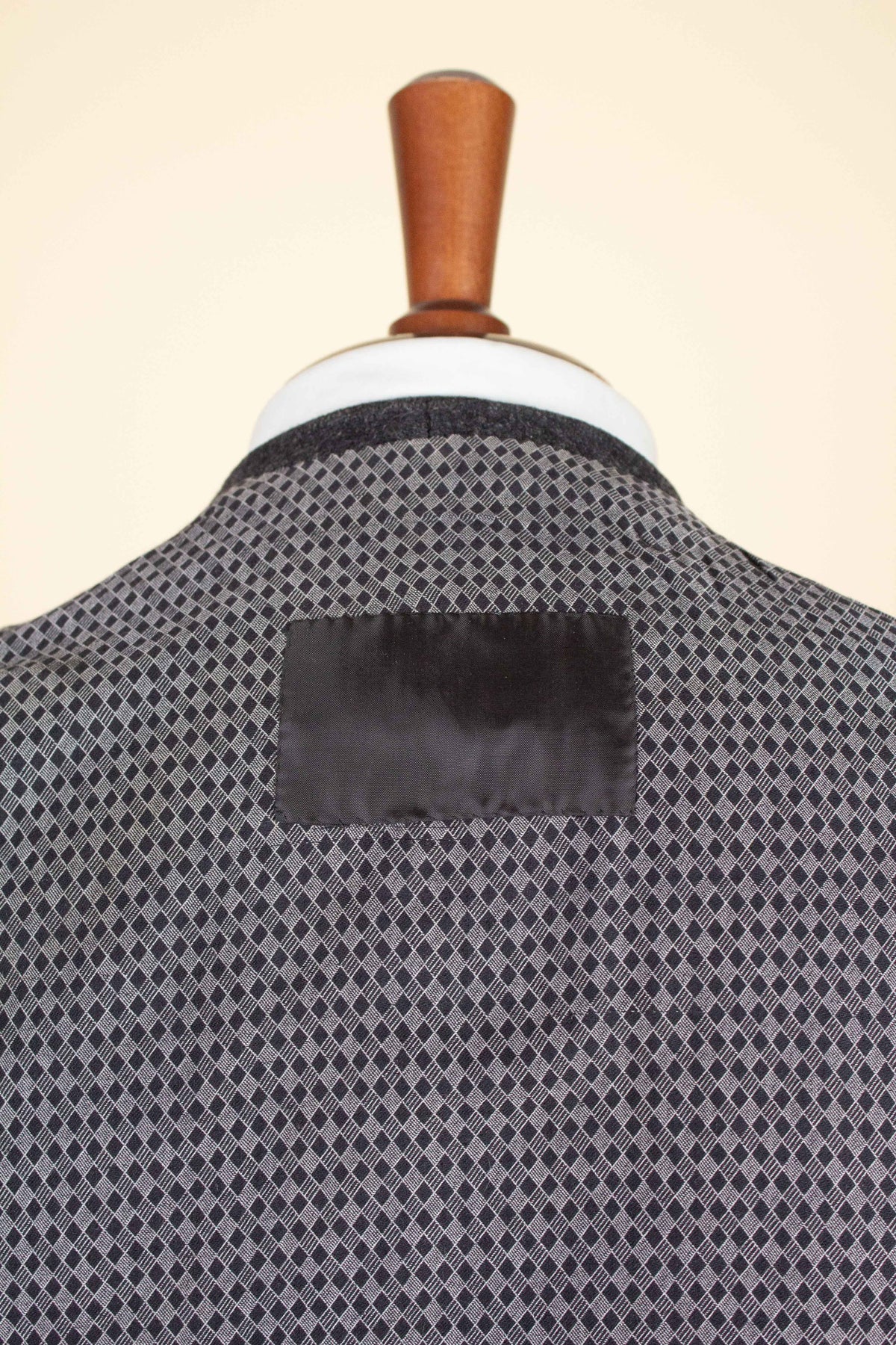 When considering all three pieces together, the suit corresponds to a modern EU size 46 (US/UK 36). The trousers are slightly larger in the waist, corresponding to approximately an EU 50 (US/UK 40). This measurement is taken with the back strap fully loosened; when the strap is tightened slightly, the trousers correspond in size with the other pieces. Please scroll down for exact measurements and seam allowances.
