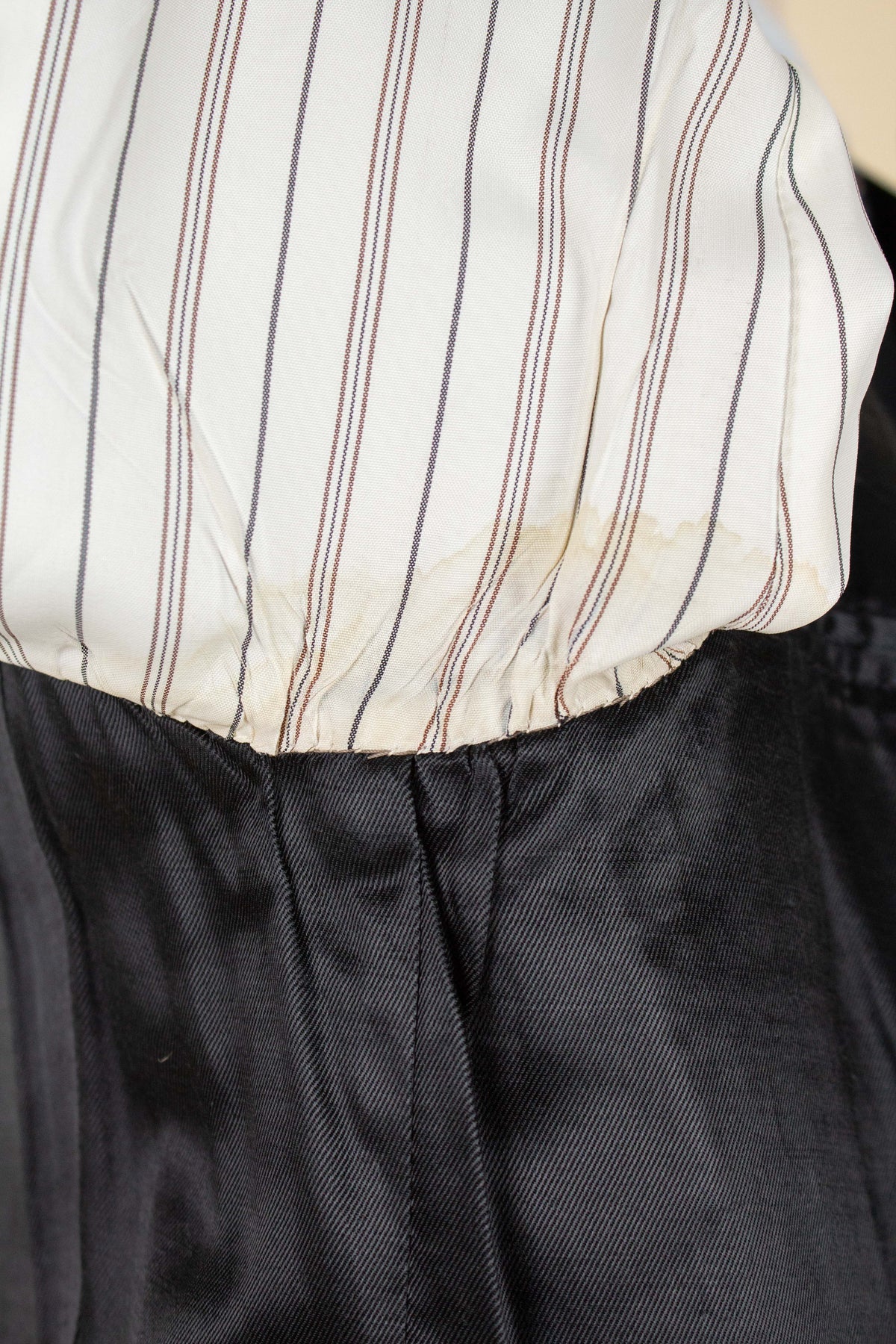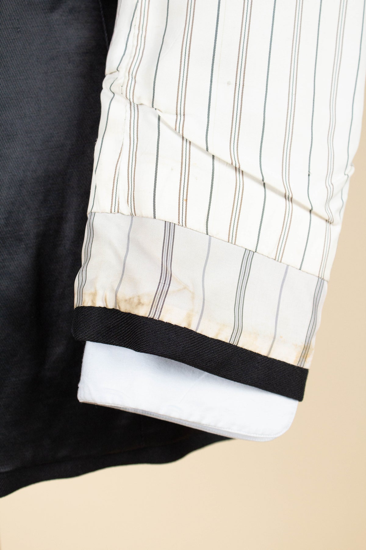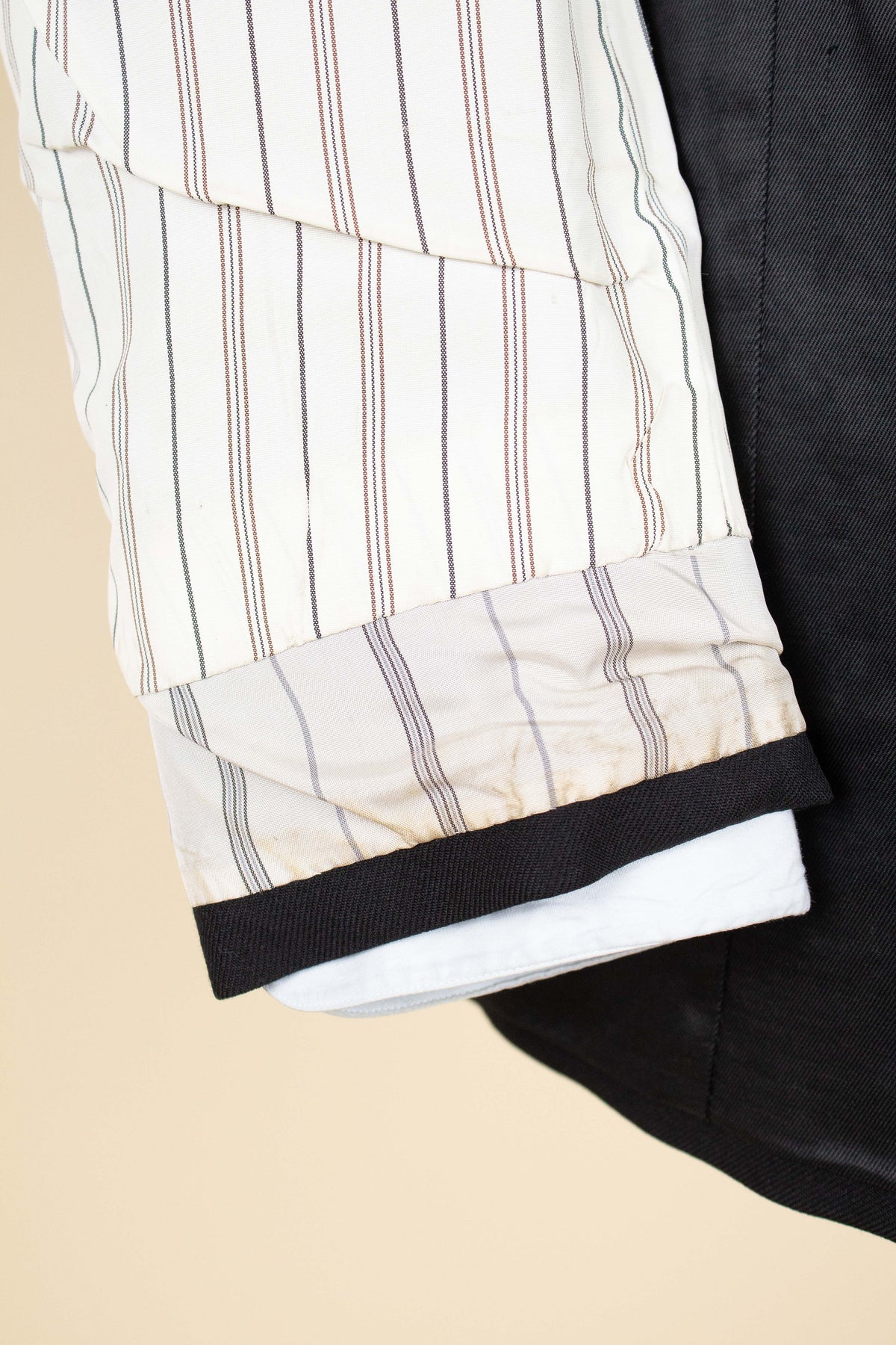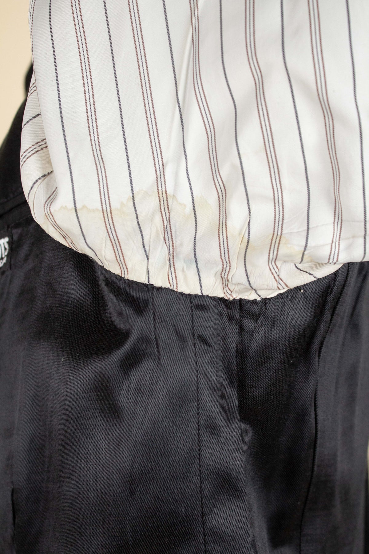 In terms of condition, there are some minor imperfections, though nothing that affects the overall appearance. For example, there is a small area of damage on the jacket lapel, some discolouration in the lining, and the trousers have developed a slight shine in the fabric at the back. Please study the images carefully and form your own opinion of the condition.