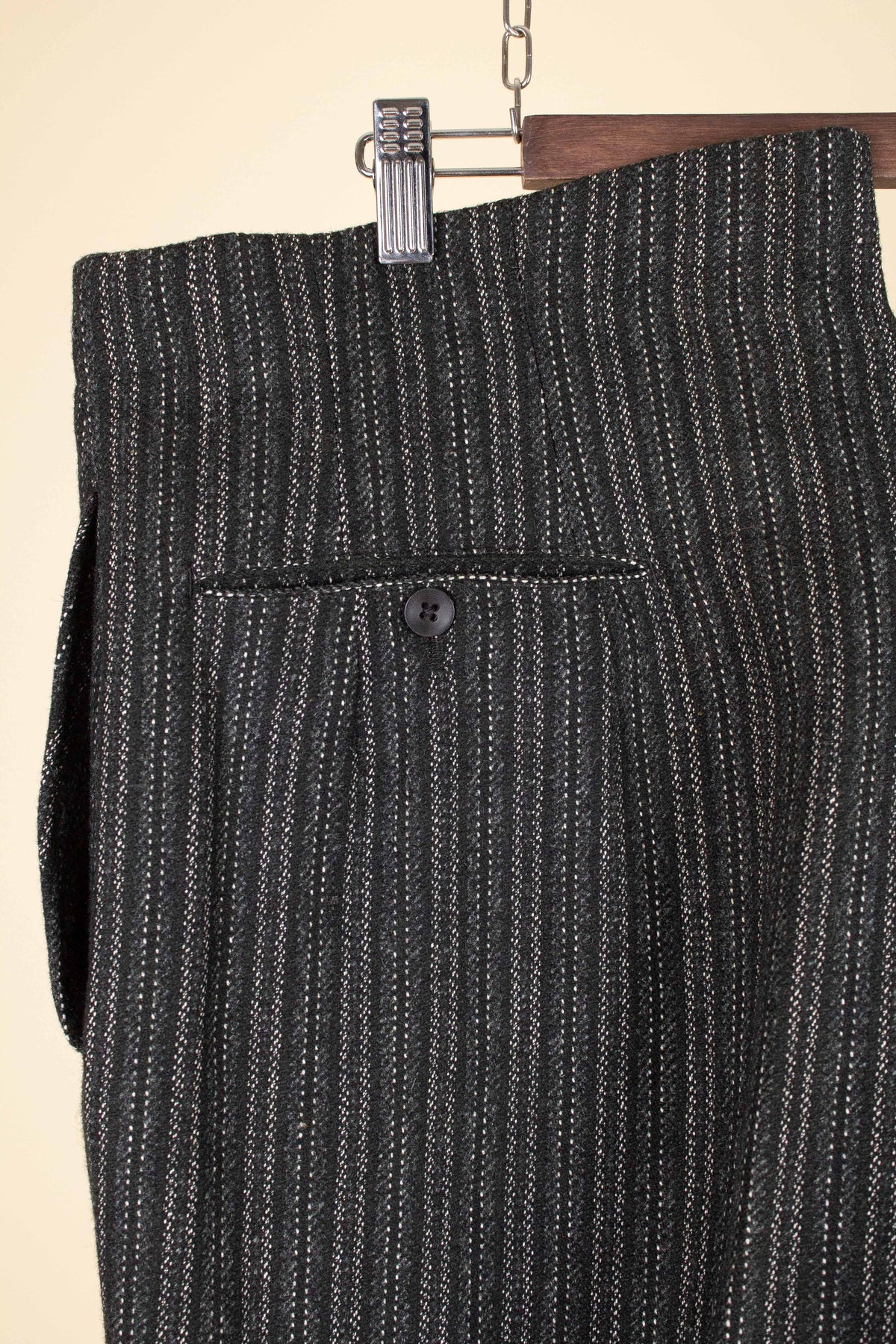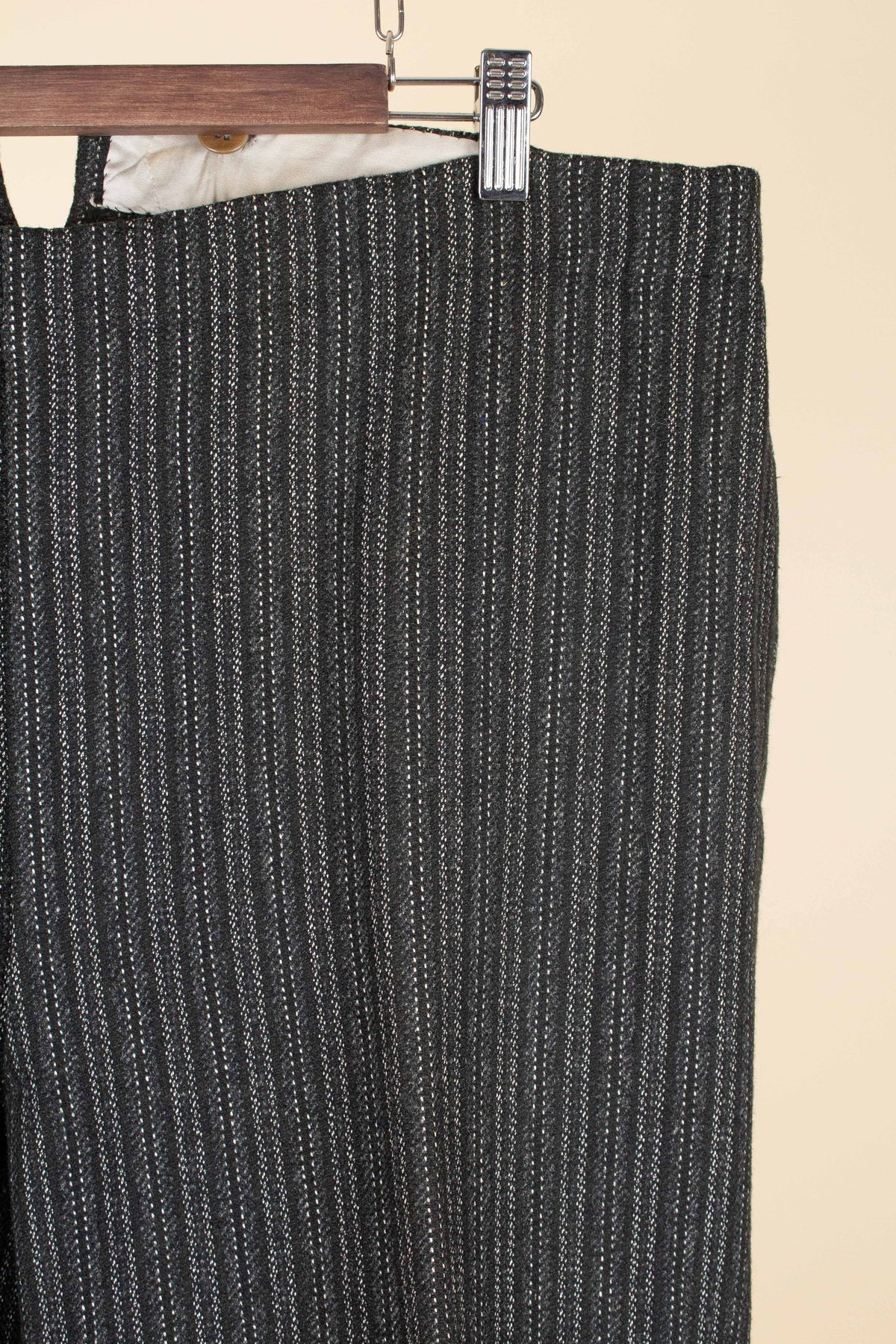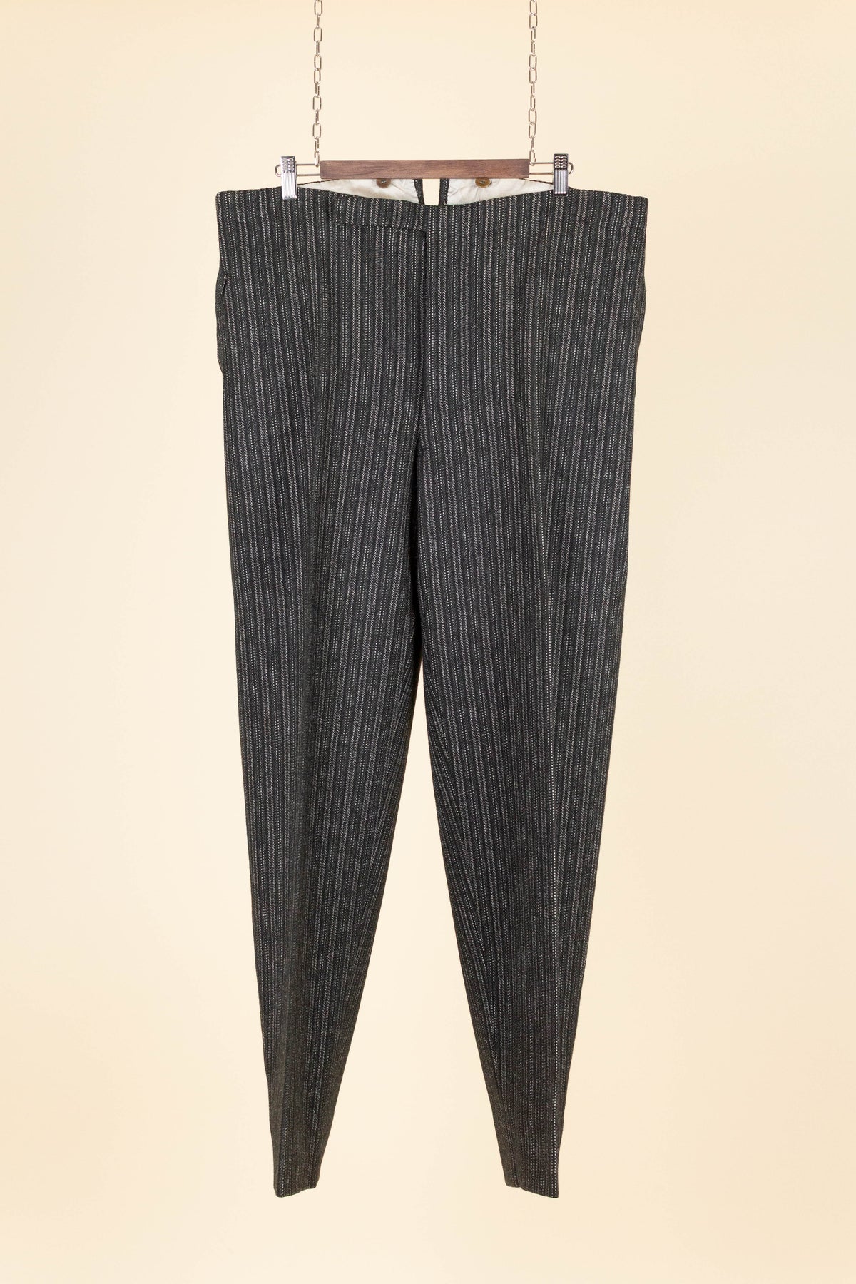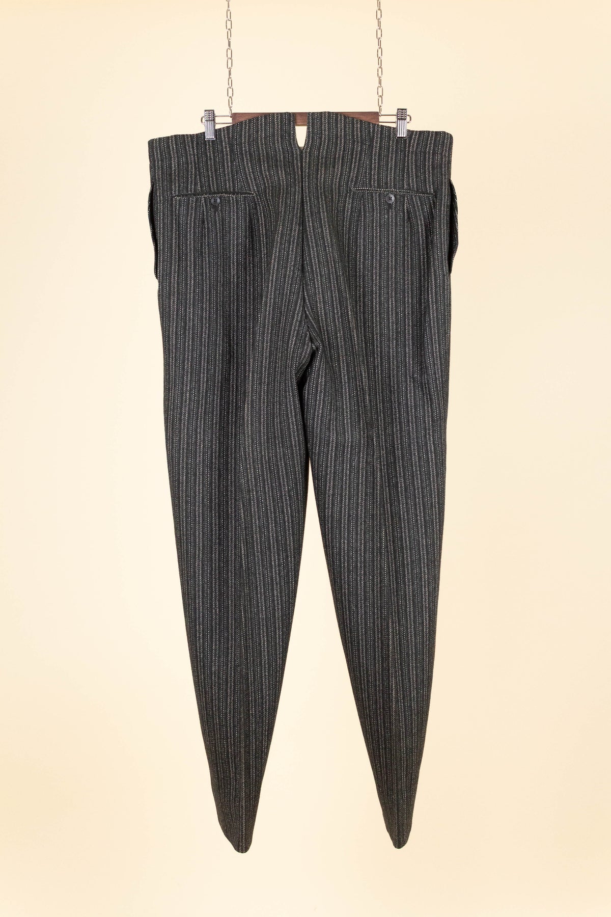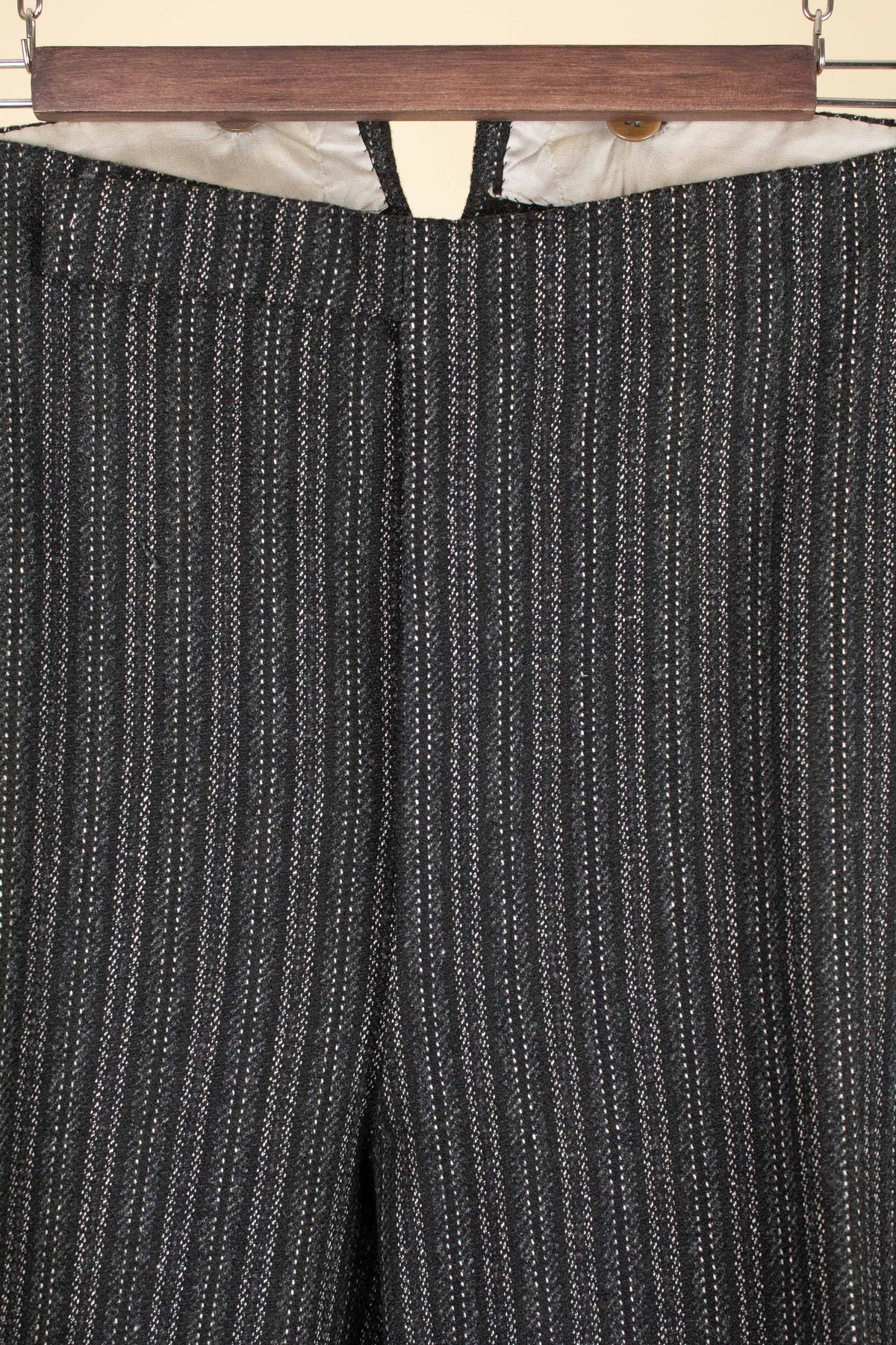 In terms of size, they correspond approximately to a modern EU 56 (US/UK 46). As previously mentioned, they have been let out at some point, which means there is no additional material available to let out the waist further. Please scroll down for the exact measurements.