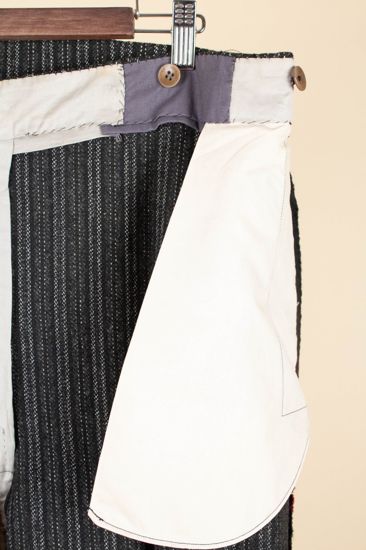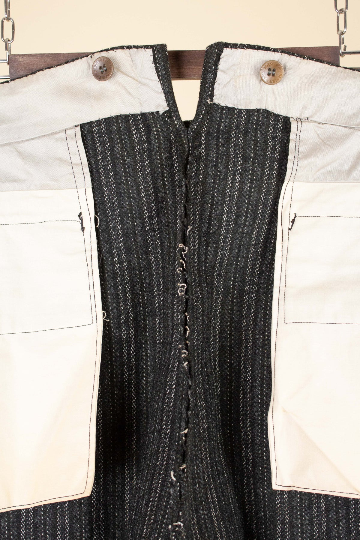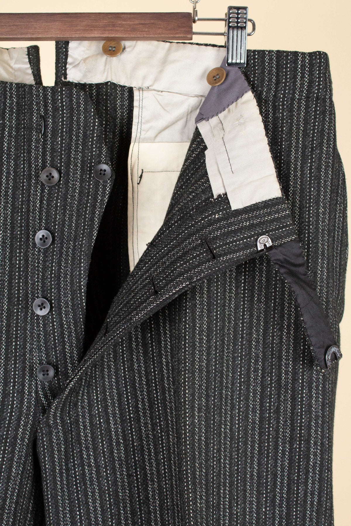 The overall condition is very good. However, it should be noted that the tab in the fly can no longer be used, as the trousers have been let out at some point. This could of course be adjusted if desired. Please study the photographs carefully and form your own impression of the condition.