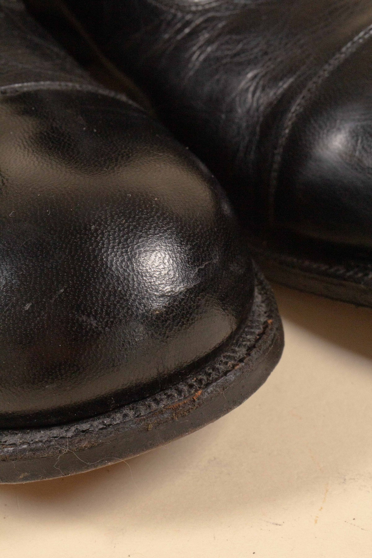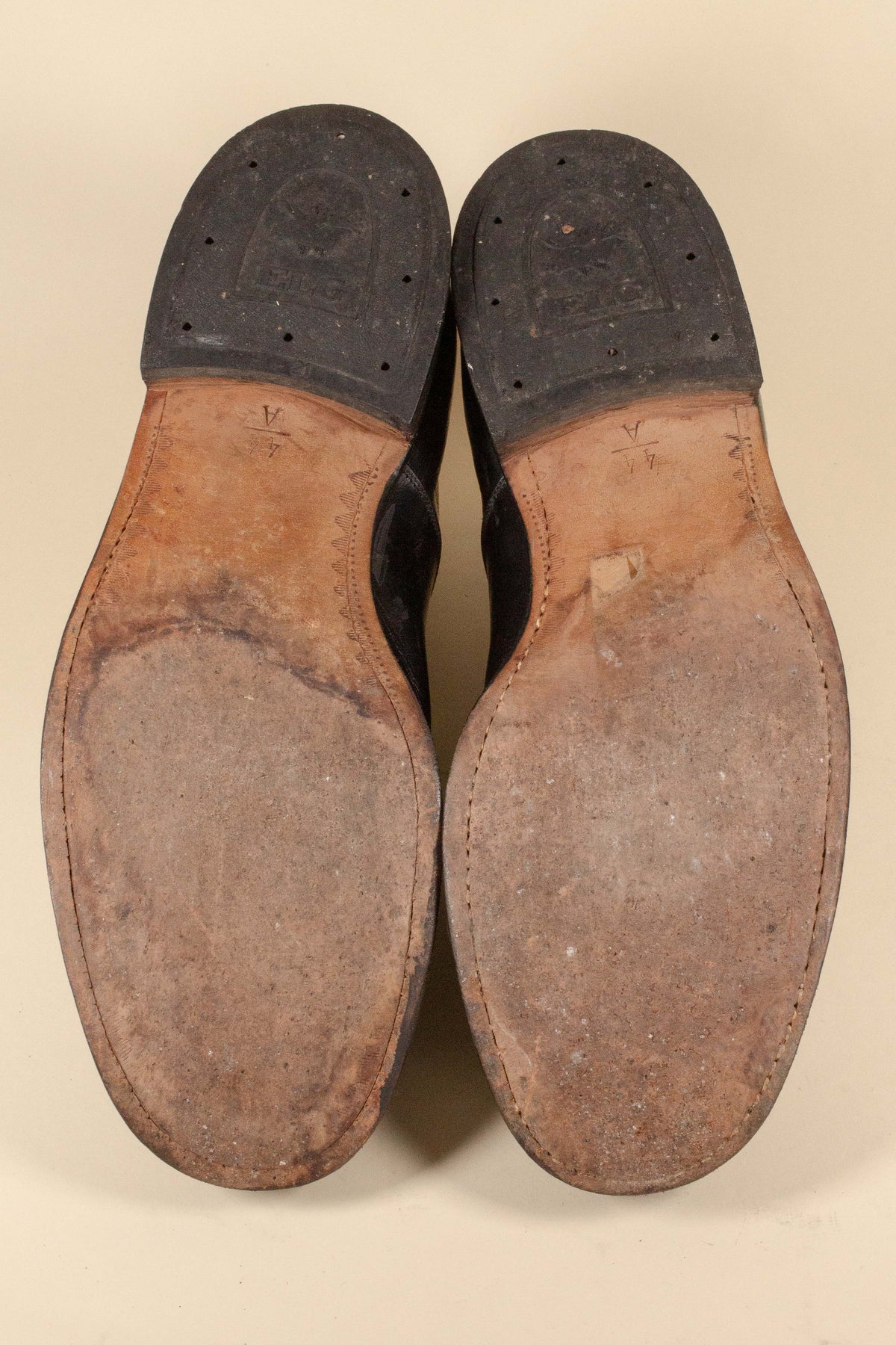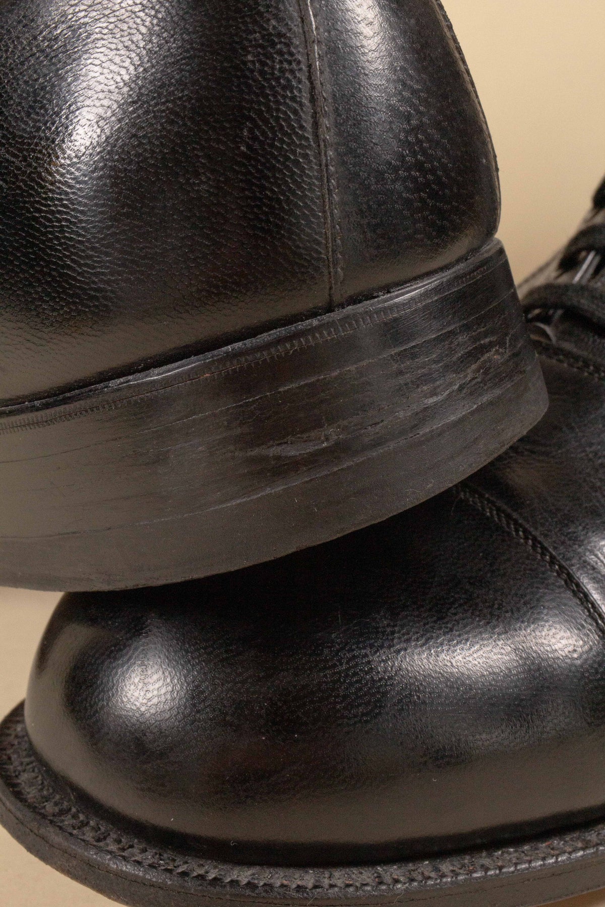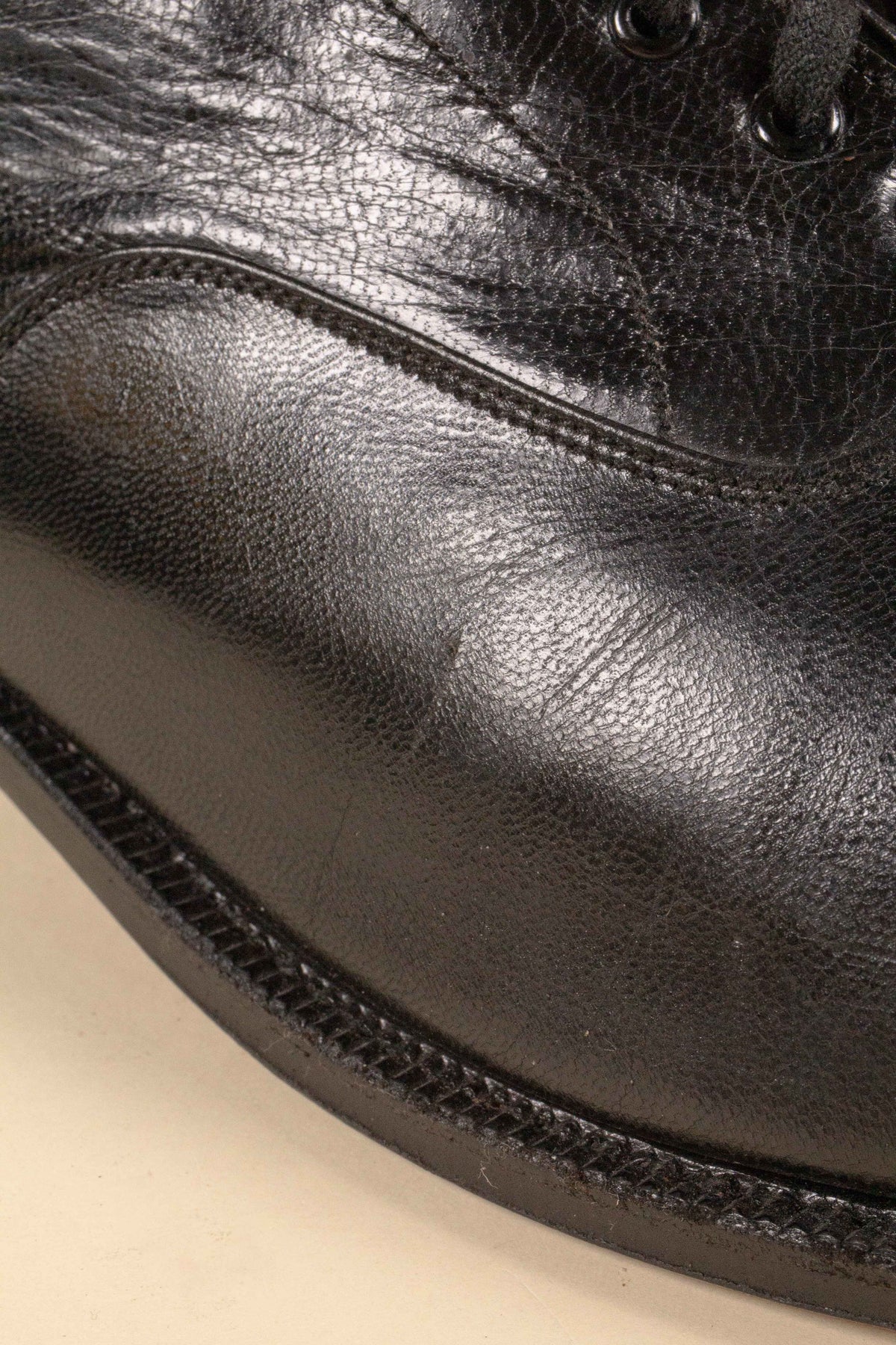 In terms of condition, the uppers are in unusually good shape - soft and well-preserved, and with proper care they will last for many more years. The only real flaw in the leather is a minimal crack at the very front of the toe cap on the right shoe. The soles still have plenty of life left before a resole will be necessary. Please study the photographs and form your own opinion of the condition.